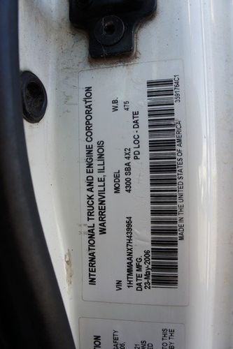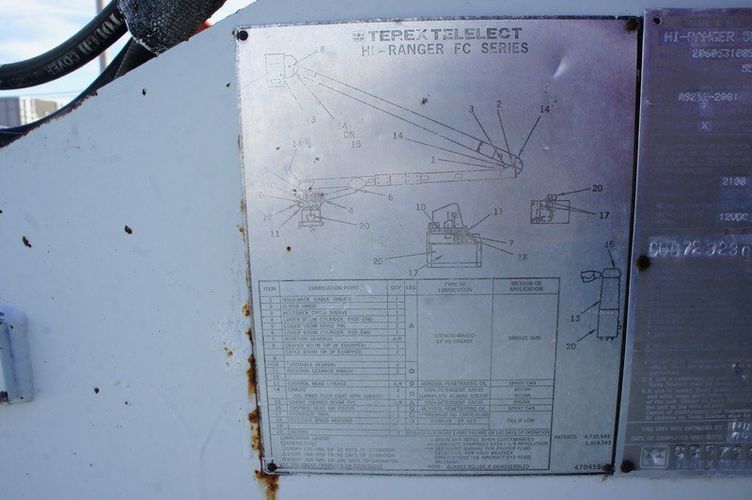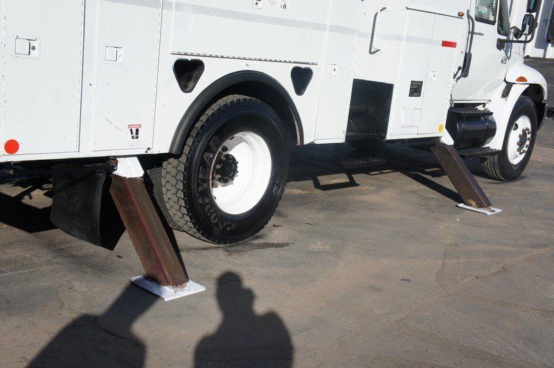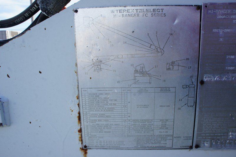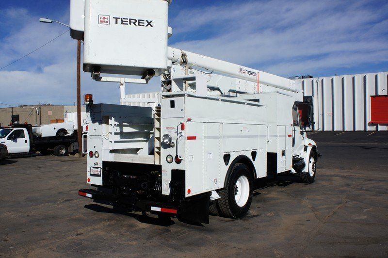 Features: 7.6L International DT466 Engine, Automatic Transmission, Spring Suspension, Air Brakes, Heat, Air Conditioning, Auxiliary Controls, Utility Bed, Terex Hi Ranger 5FC-55 Boom, 650 lb Max Lift Capacity, Maximum Lift Height 55Ft, Ground and Platform Boom Controls, Regular Cab, Strobe Lights, Work Lights, Cab Lights, Outriggers, Trailer Brake Controller, Air Seat, Manual Locks, Manual Windows, Cruise Control, Locking Differential, AM/FM, PTO, GVWR 33000lb, Front GAWR 12000lb, Rear GAWR 21000lb