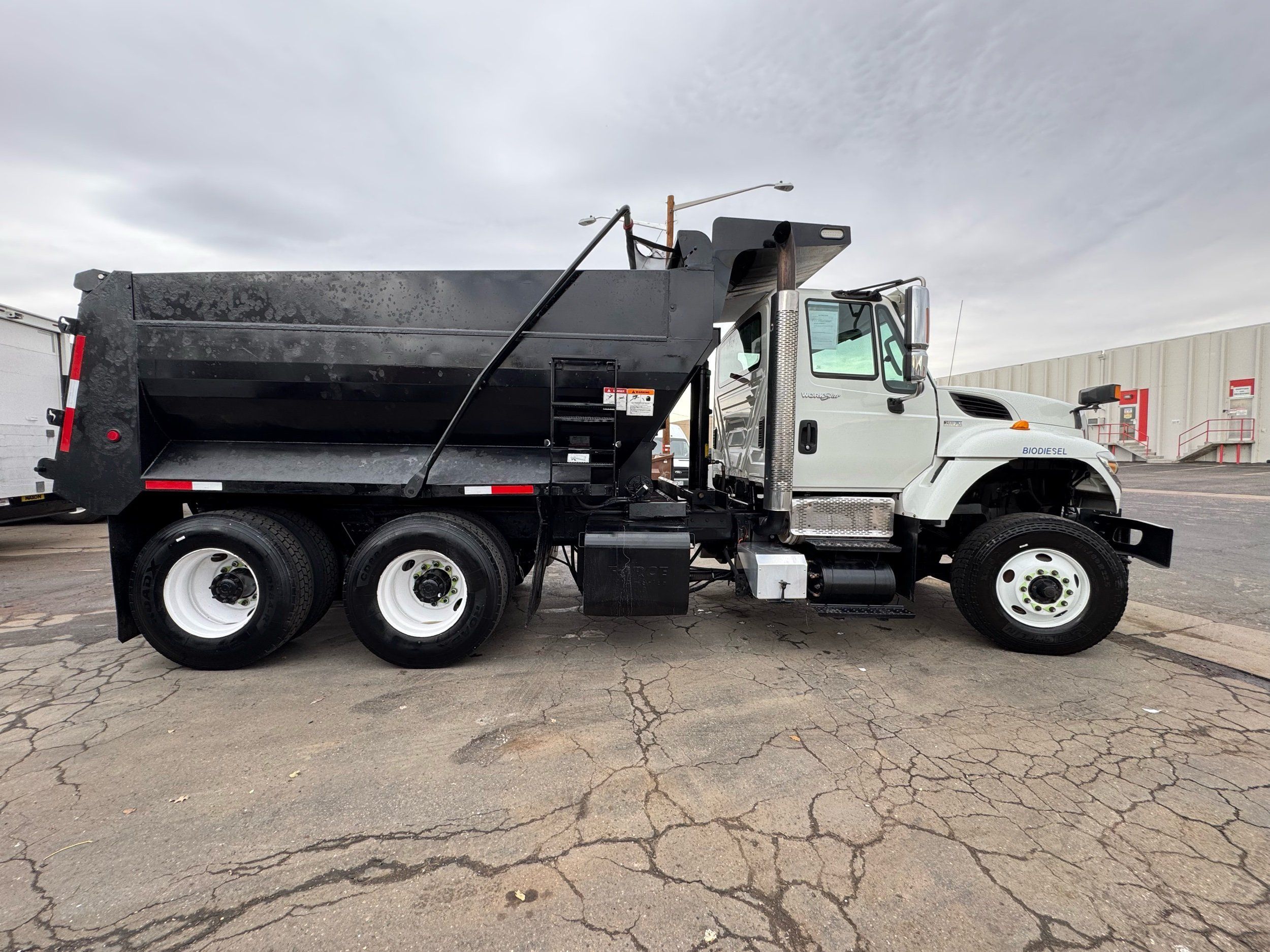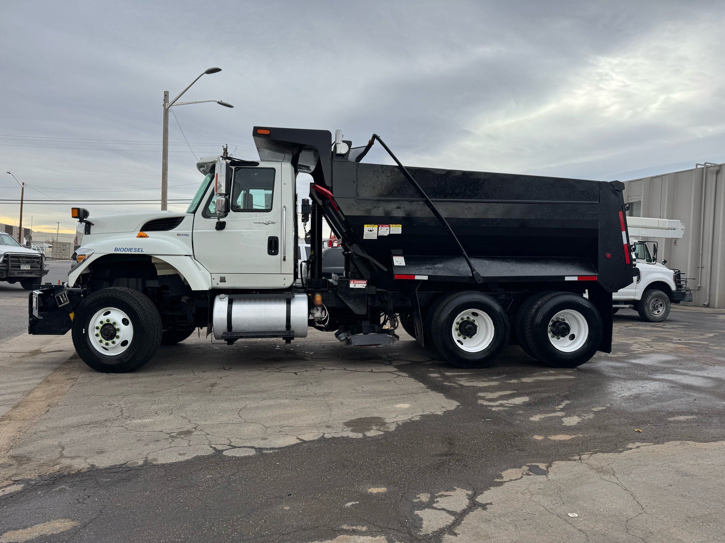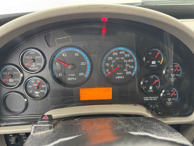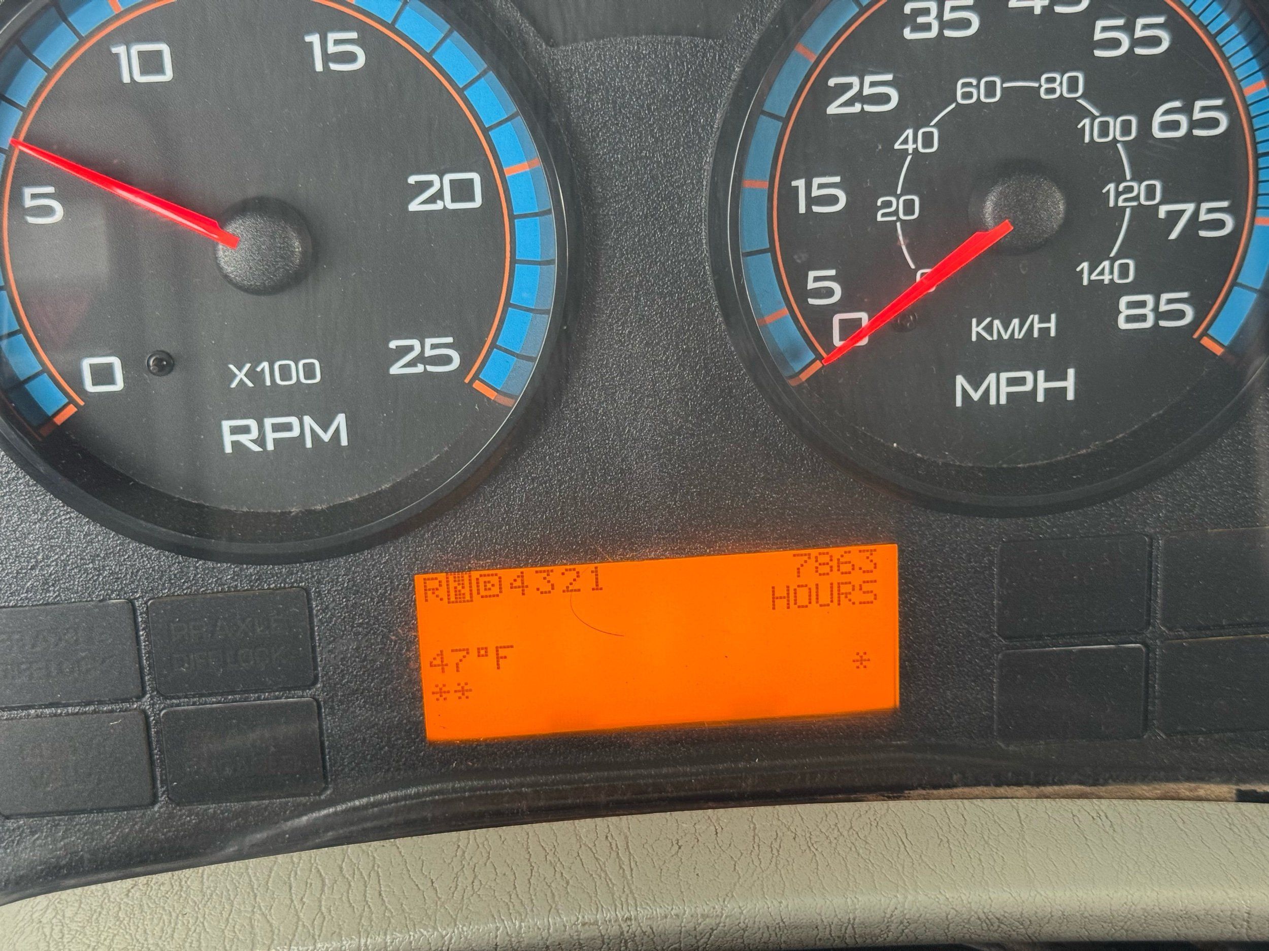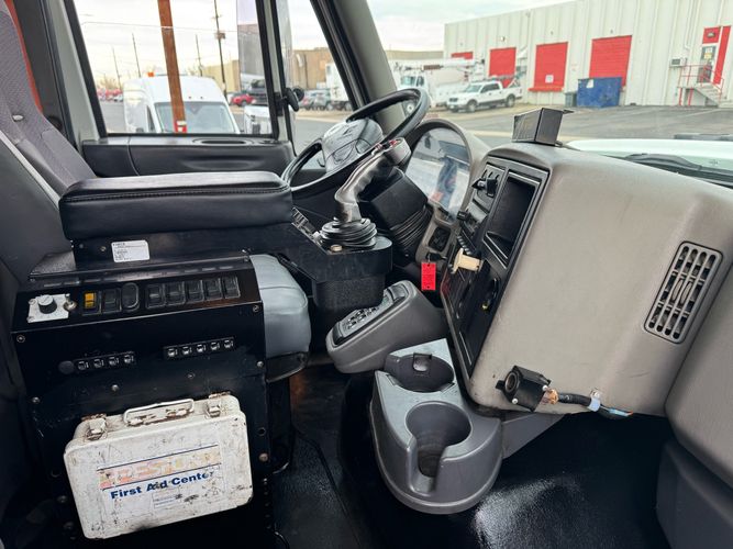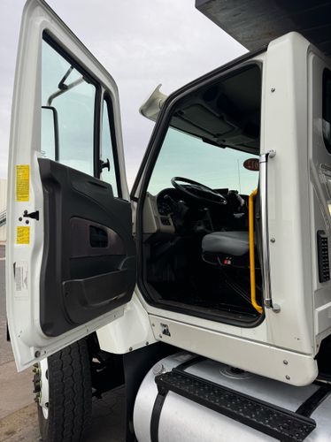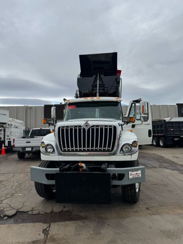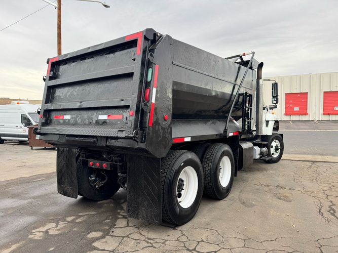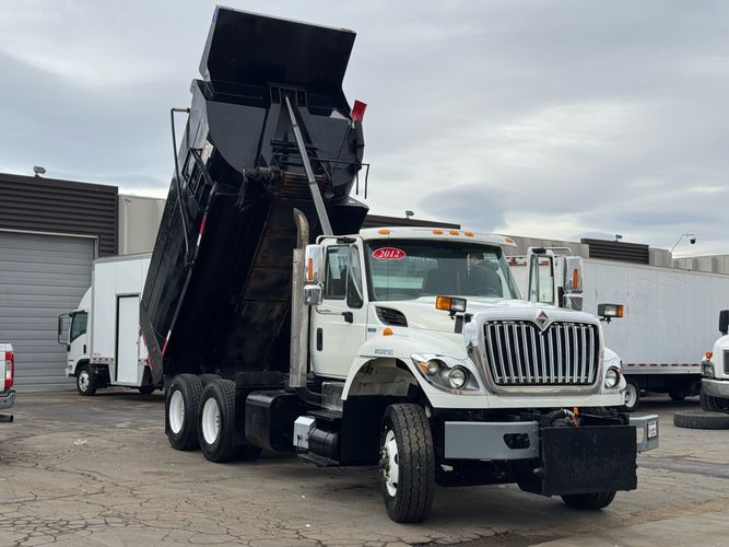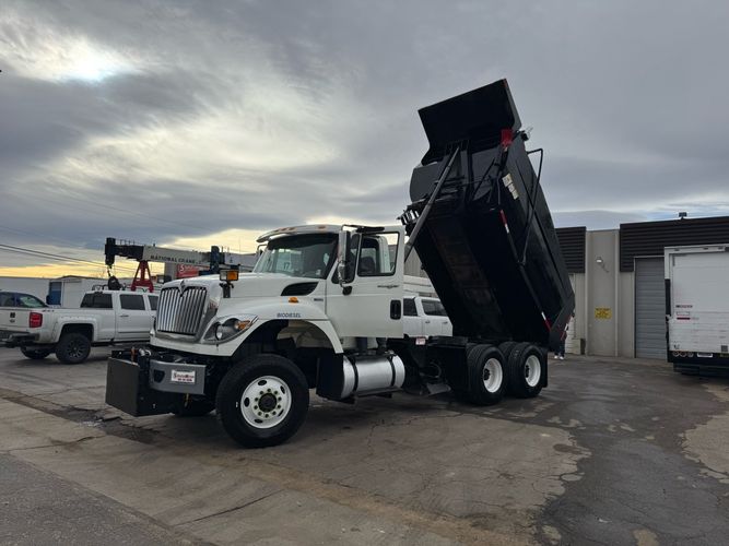 Features: Maxxforce 13 Engine, 14F Dump Bed, Dual Axle, Mud Flaps, Visor, Strobe Lights, Signal Integrated Mirrors, Dump Bed Cover, Air Brakes, Sander / Spreader, Single Piston Bed, New Tires, Regular Cab, Force America Piston Pump, Air Seat, Vinyl Floor, Vinyl Seats, Tilt Wheel, GVWR 60000lb, Front GAWR 20000lb, Mid GAWR 20000lb, Rear GAWR 20000lb, Power Locks, Power Windows, Power Mirrors, 430 BHP, 1550lb Torq, Automatic Transmission, Cruise Control, 7863 Engine Hours, 13.6 PTO Hours, Allison Transmission, Command All Controller by Force America, Heat, Air Conditioning, Defrost, AM/FM, Auxiliary, Differential Lock