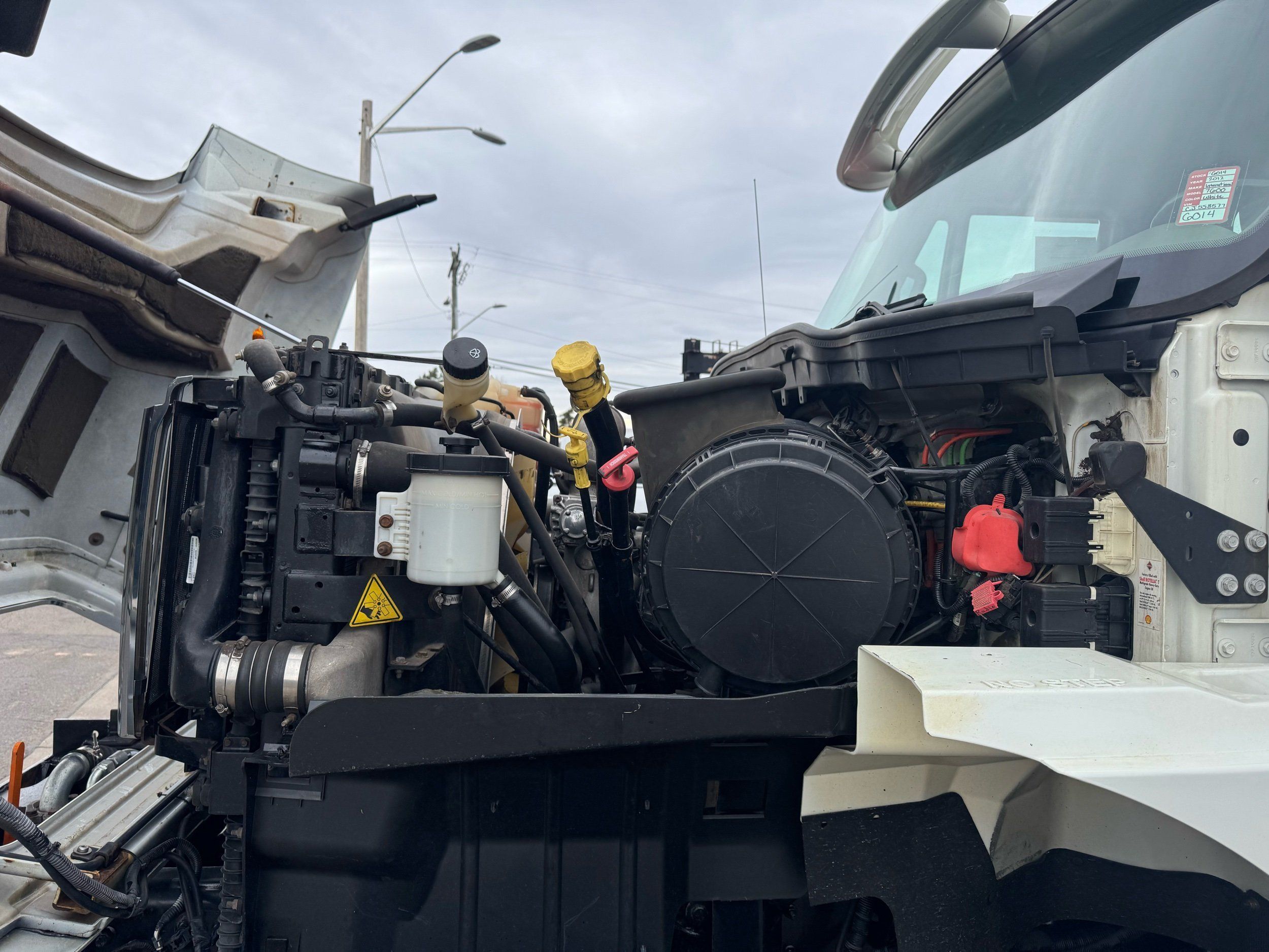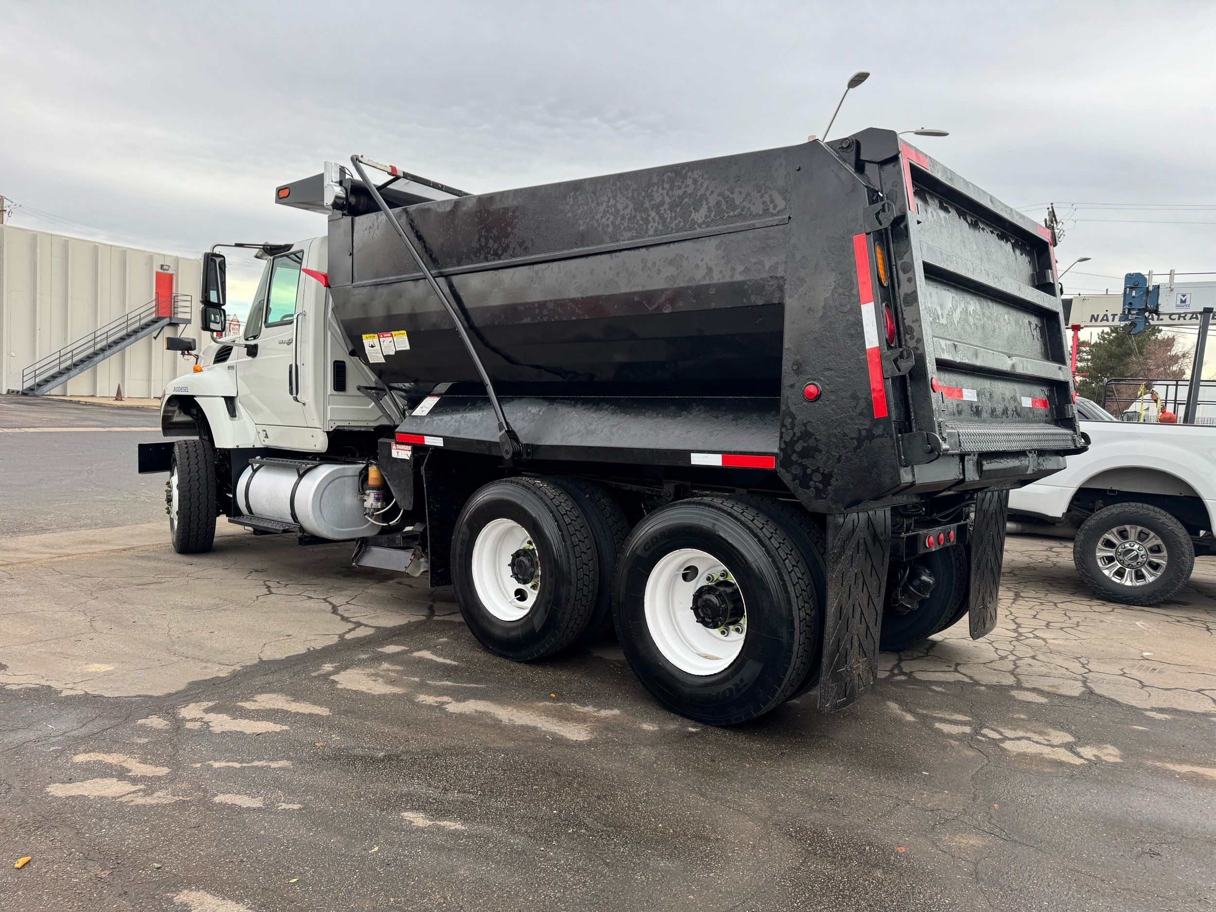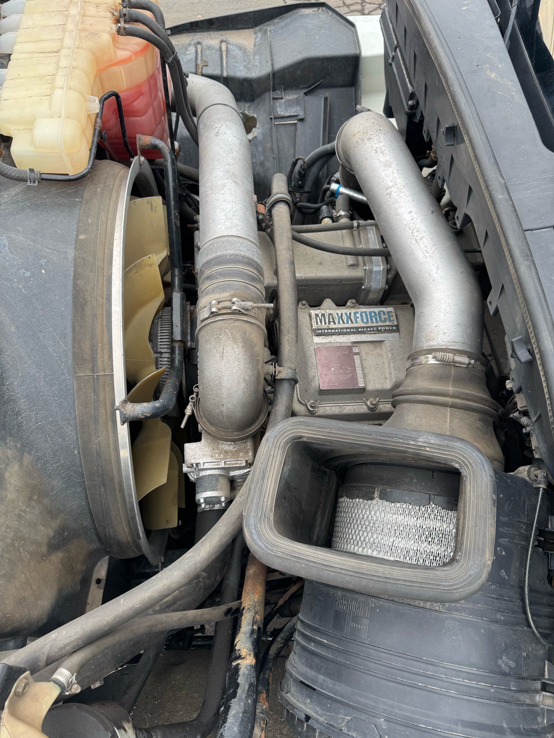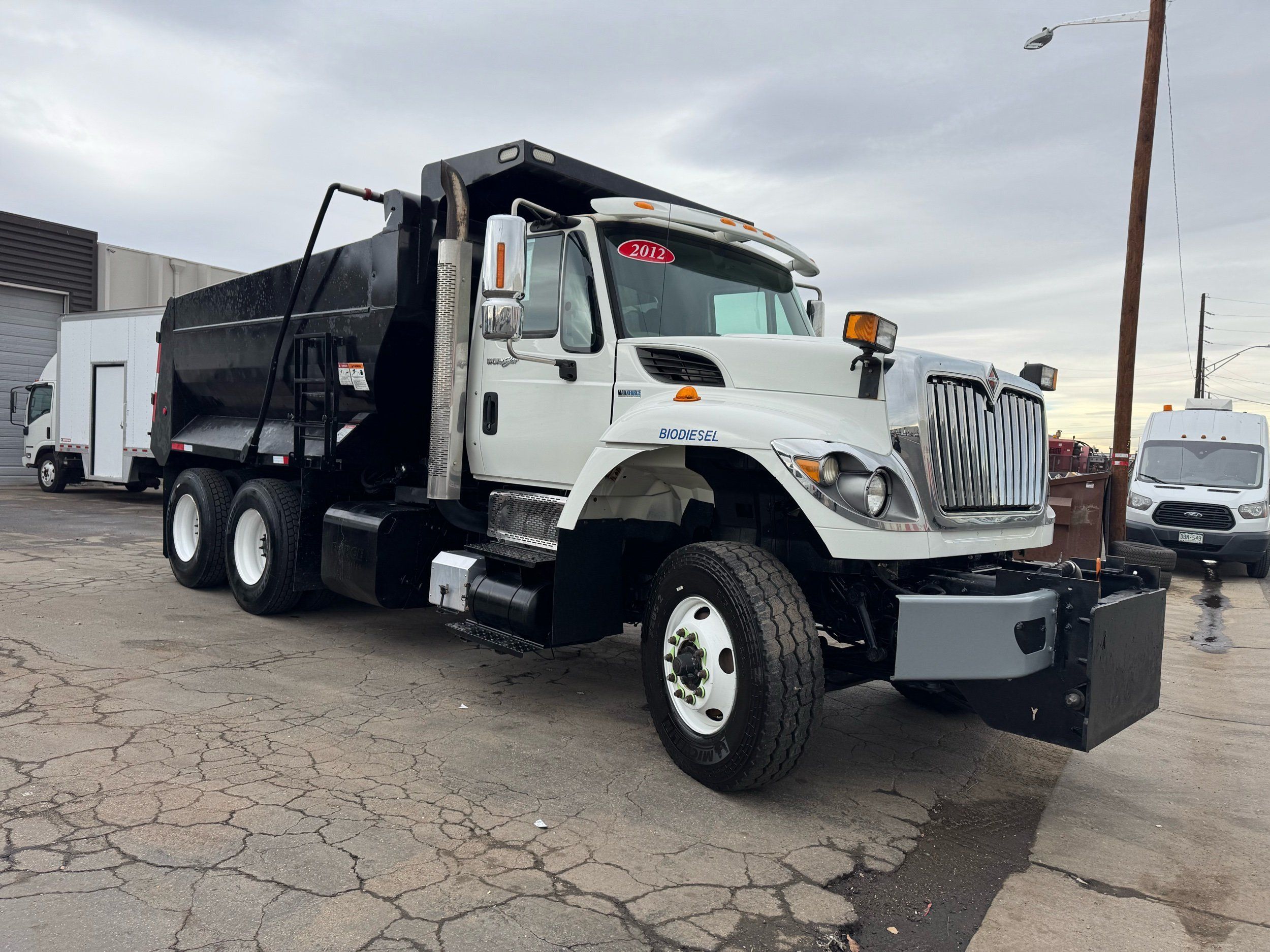 Features: Maxxforce 13 Engine, 14F Dump Bed, Dual Axle, Mud Flaps, Visor, Strobe Lights, Signal Integrated Mirrors, Dump Bed Cover, Air Brakes, Sander / Spreader, Single Piston Bed, New Tires, Regular Cab, Force America Piston Pump, Air Seat, Vinyl Floor, Vinyl Seats, Tilt Wheel, GVWR 60000lb, Front GAWR 20000lb, Mid GAWR 20000lb, Rear GAWR 20000lb, Power Locks, Power Windows, Power Mirrors, 430 BHP, 1550lb Torq, Automatic Transmission, Cruise Control, 7863 Engine Hours, 13.6 PTO Hours, Allison Transmission, Command All Controller by Force America, Heat, Air Conditioning, Defrost, AM/FM, Auxiliary, Differential Lock