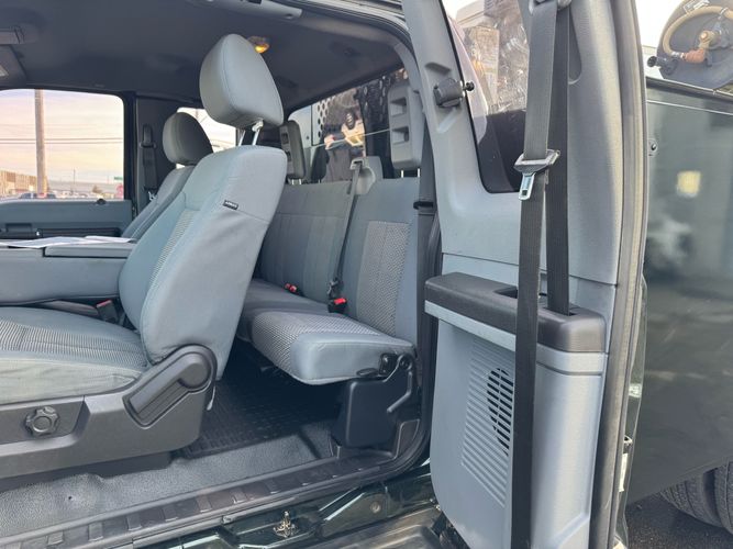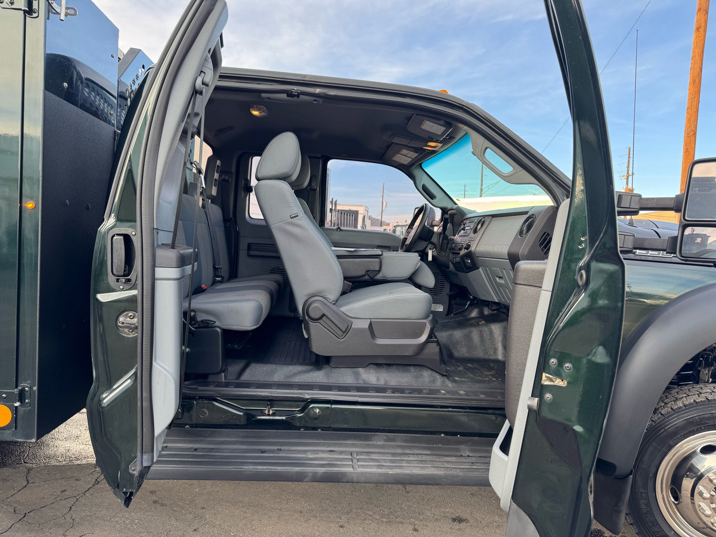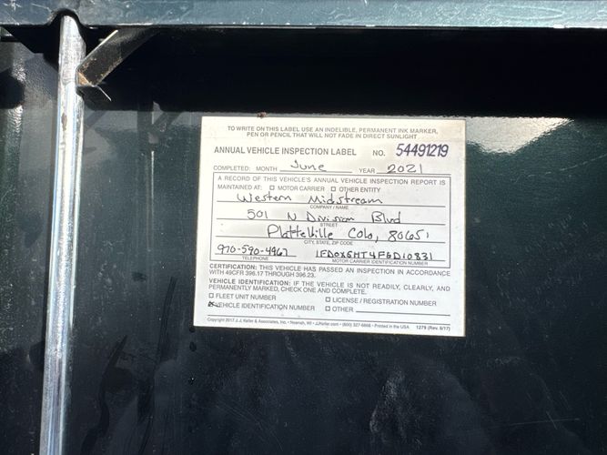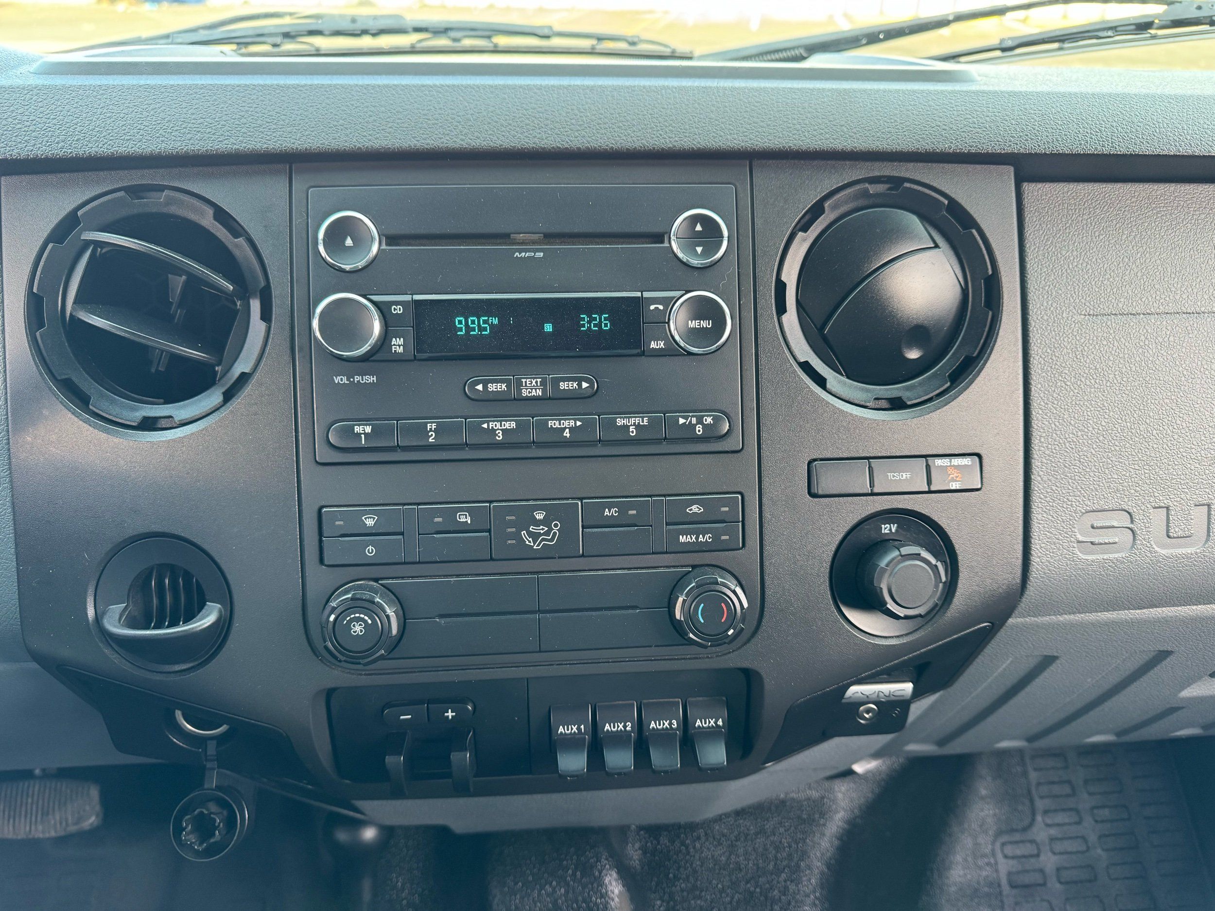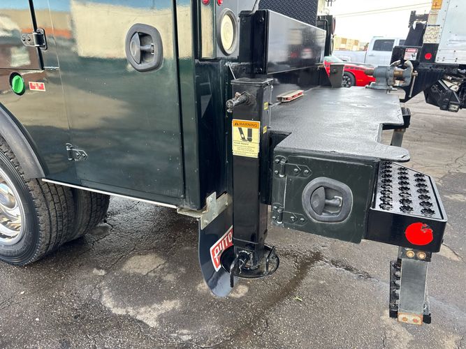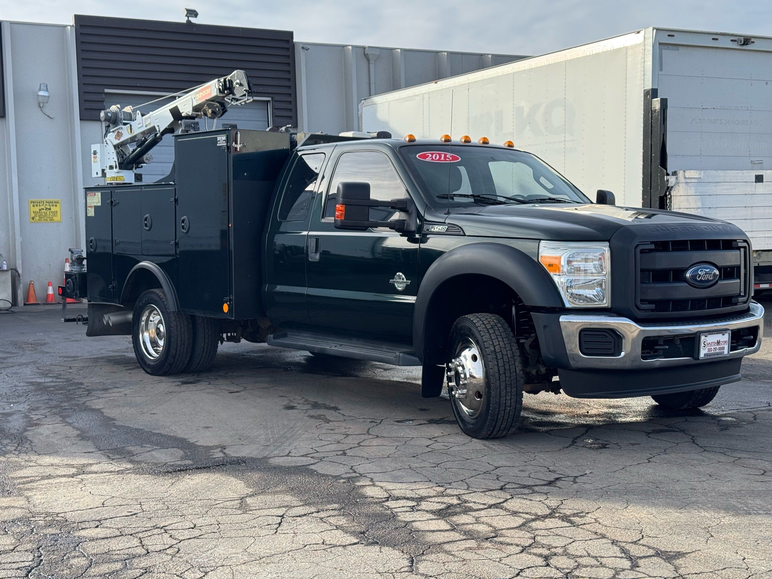 Features: Extended Cab, Cab Lights, Electric Crane, Dual Rear Wheels, Service Body, Running Boards, Signal Integrated Mirrors, Heated Mirrors, Power Locks. Power Steering, Power Windows, Power Mirrors, Mud Flaps, Trailer Package, Tow Hitch, IMT 3203i Crane, Wireless Remote, Diesel Engine, Cloth Seats, Vinyl Floor, Manual Seat, Cruise Control, Hands Free Calling, Low Miles, 74k Miles, CD, MP3, AM/FM, Auxiliary, Bluetooth, Heat, Air Conditioning, Sync System, Four Wheel Drive, Rear Folding Seat, GVWR 19500lb, Front GAWR 7000lb, Rear GAWR 14706lb, Bench Vise, Outriggers, Hose Reel, Ingersoll Rand Compressor, 300HP 6.7L Powerstroke