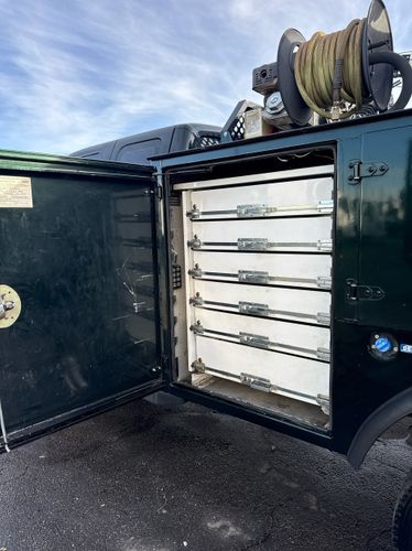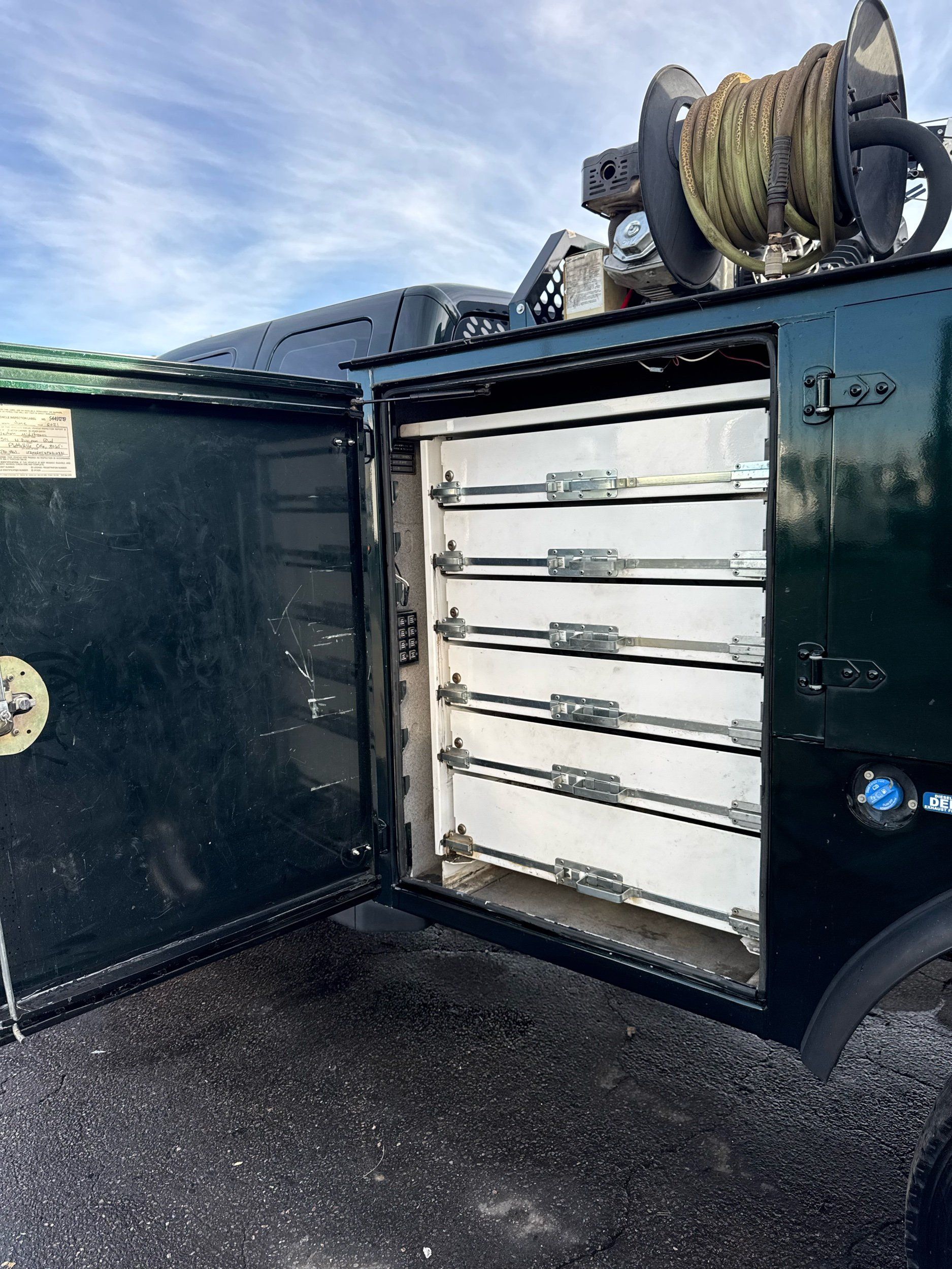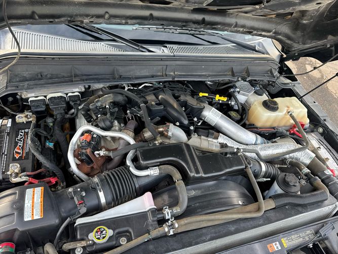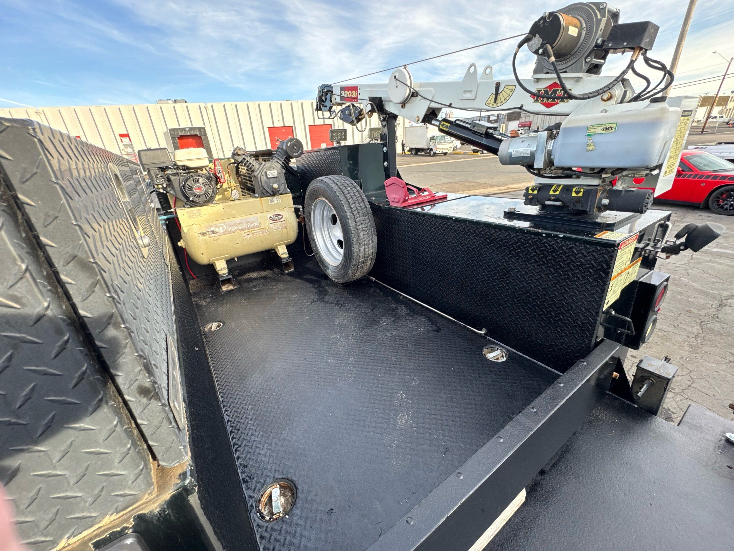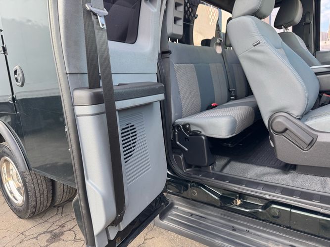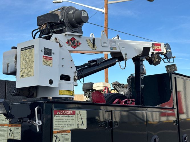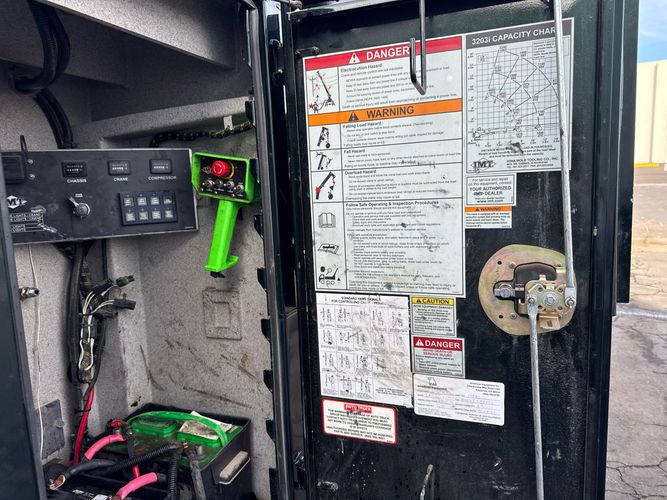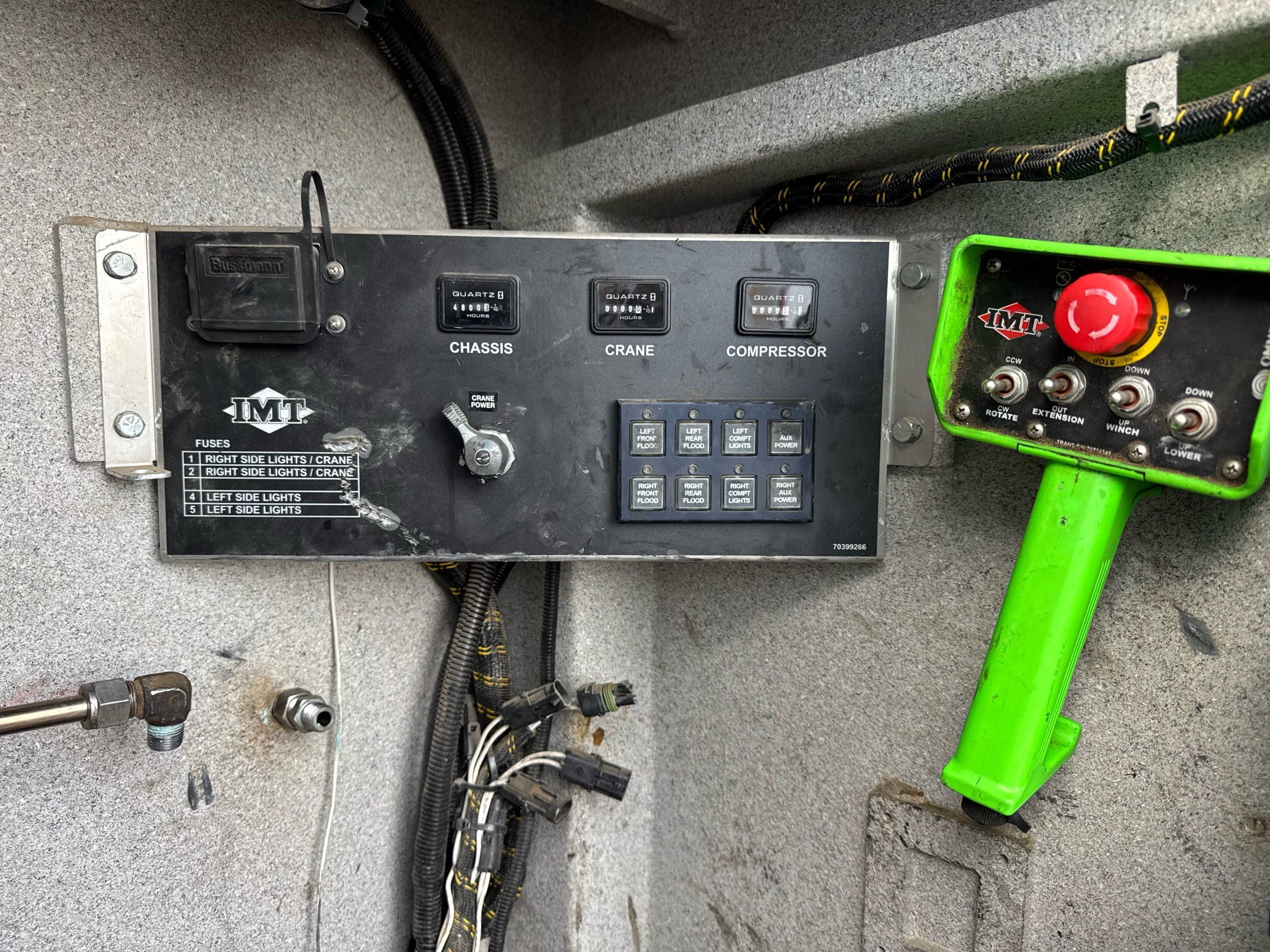 Features: Extended Cab, Cab Lights, Electric Crane, Dual Rear Wheels, Service Body, Running Boards, Signal Integrated Mirrors, Heated Mirrors, Power Locks. Power Steering, Power Windows, Power Mirrors, Mud Flaps, Trailer Package, Tow Hitch, IMT 3203i Crane, Wireless Remote, Diesel Engine, Cloth Seats, Vinyl Floor, Manual Seat, Cruise Control, Hands Free Calling, Low Miles, 74k Miles, CD, MP3, AM/FM, Auxiliary, Bluetooth, Heat, Air Conditioning, Sync System, Four Wheel Drive, Rear Folding Seat, GVWR 19500lb, Front GAWR 7000lb, Rear GAWR 14706lb, Bench Vise, Outriggers, Hose Reel, Ingersoll Rand Compressor, 300HP 6.7L Powerstroke