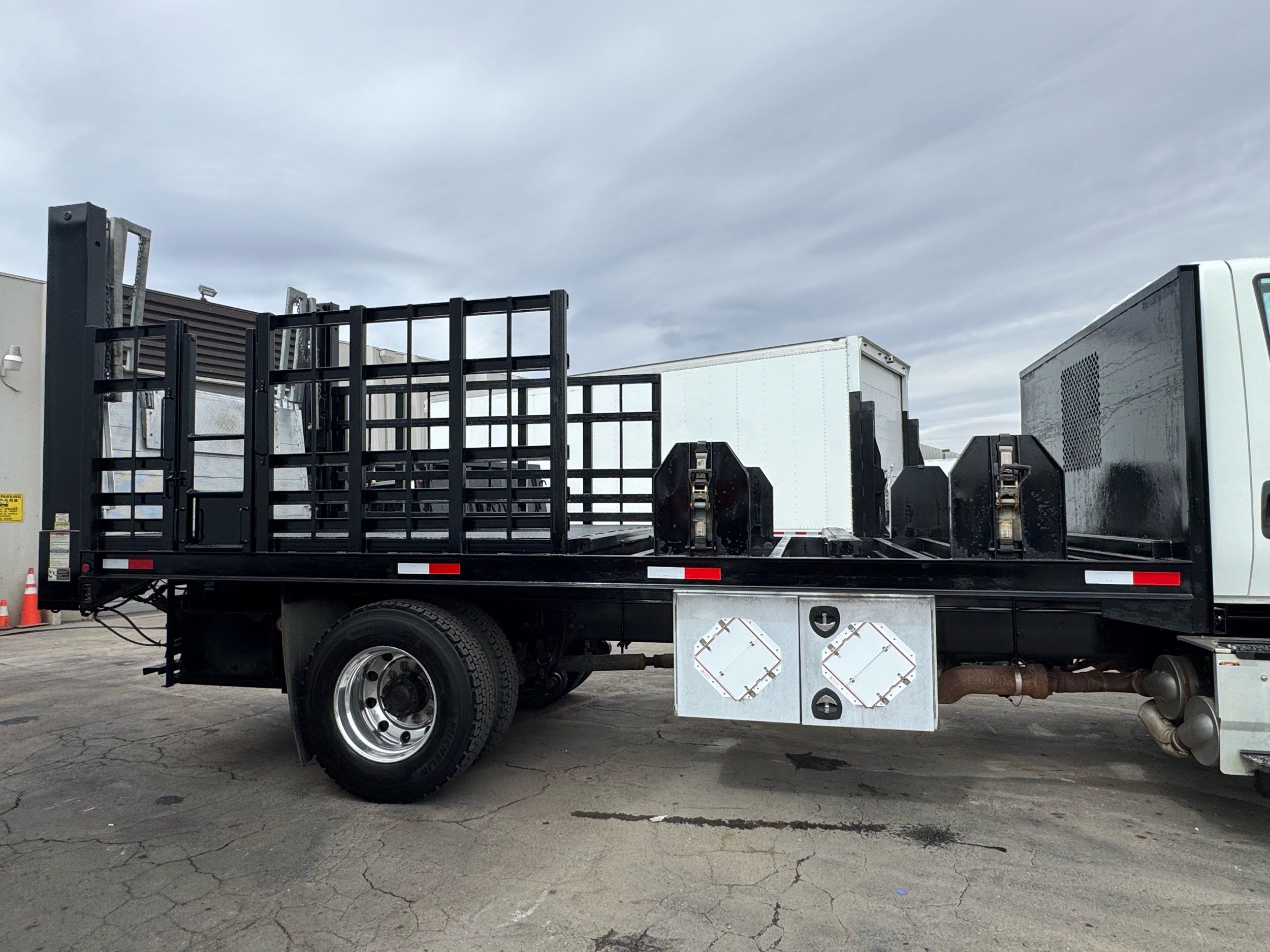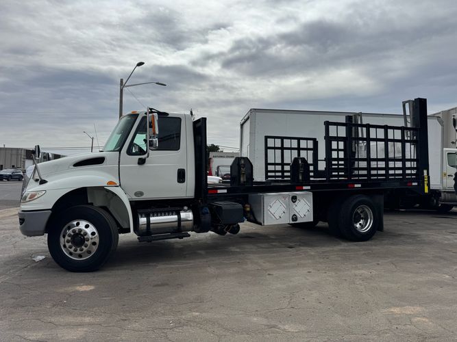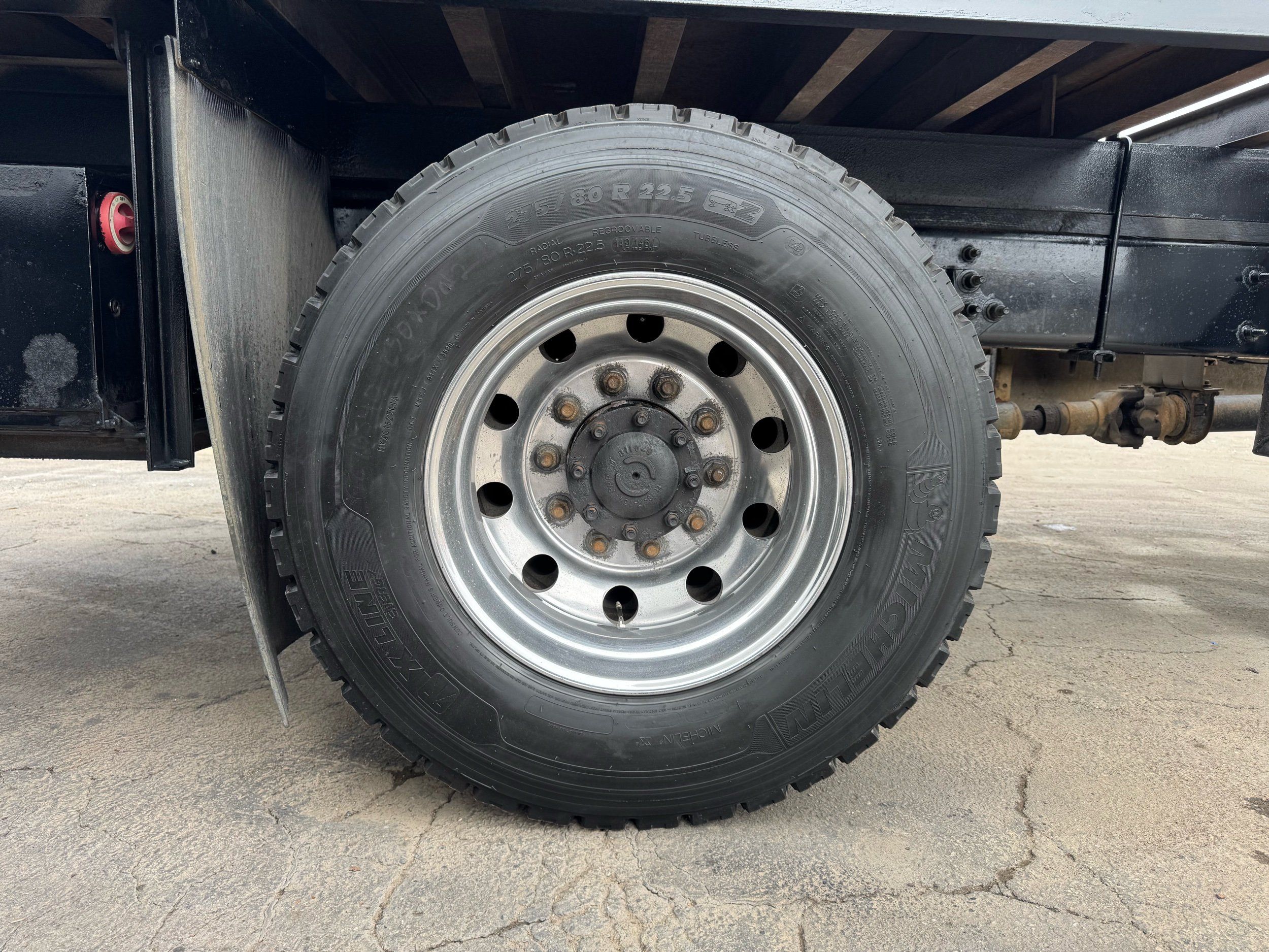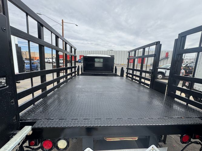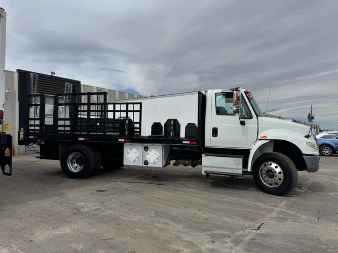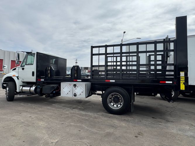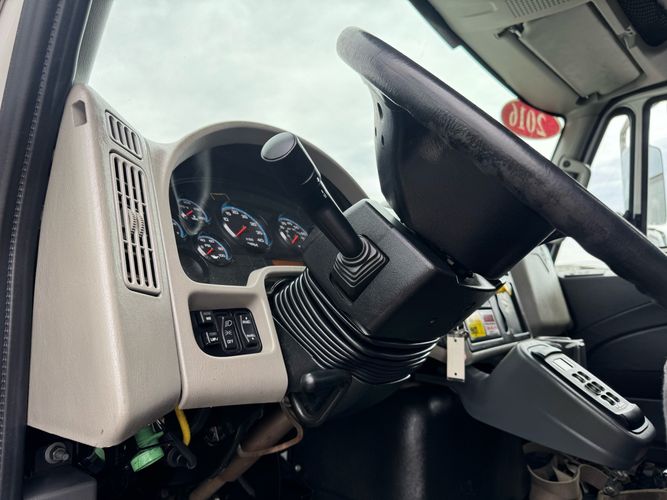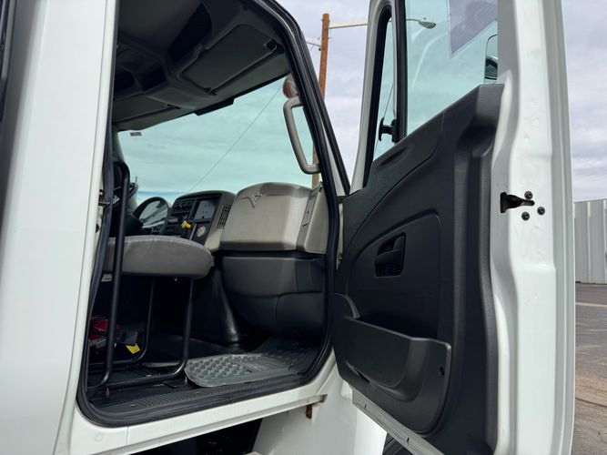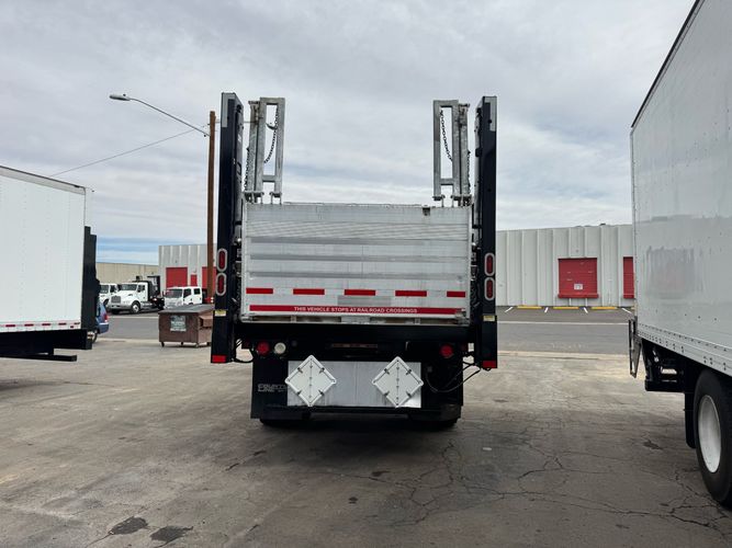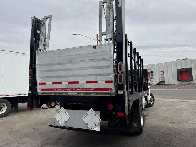 Features: Regular Cab, Dual Rear Wheel, Mud Flaps, Cab Lights, Storage Boxes, 18 FT Stakebed, 7 Ft Bed Width, Tie Down Straps, New Tires, Spring Suspension, Air Brakes, 275HP, Power Locks, Power Windows, Power Mirrors, Air Seat, Vinyl Seats, Vinyl Floor, Floor Mats, GVWR 26000lb, Cruise Control, 4994 Hours, Heat, Air Conditioning, AM/FM, Auxiliary, CD Player, 11 Ft 2 In Max Height, Allison 3000 Automatic Transmission, Maxon 3500lb Liftgate