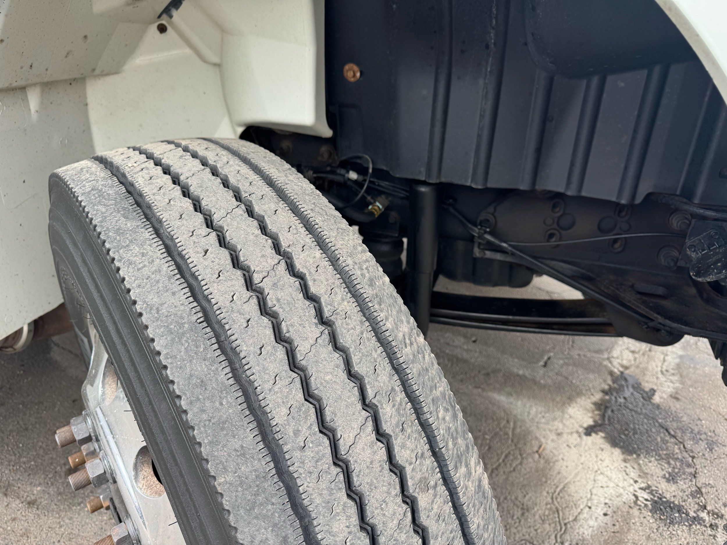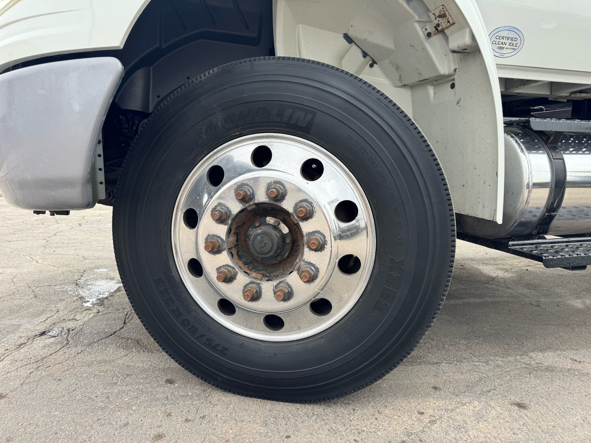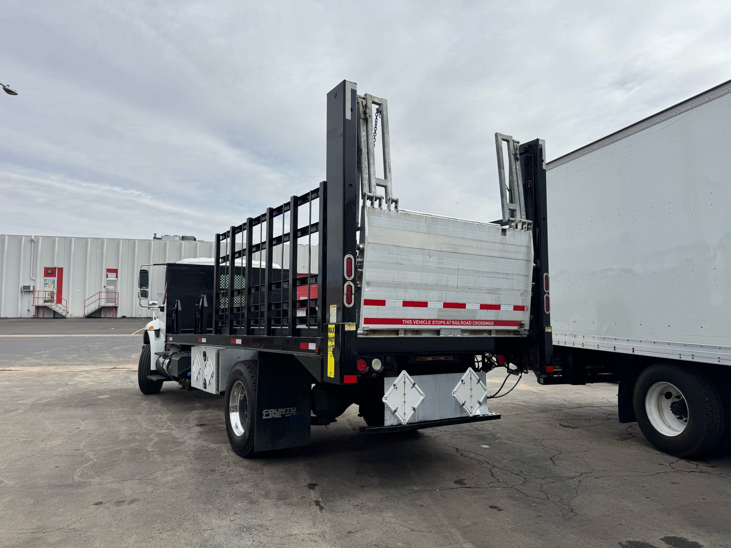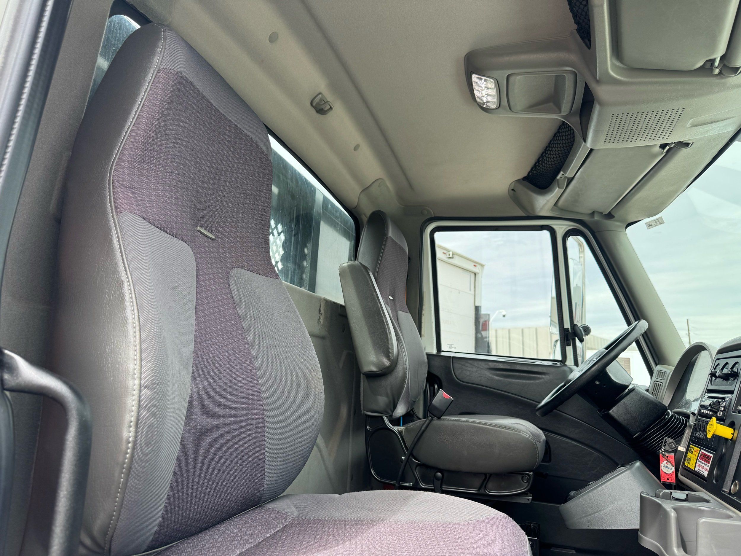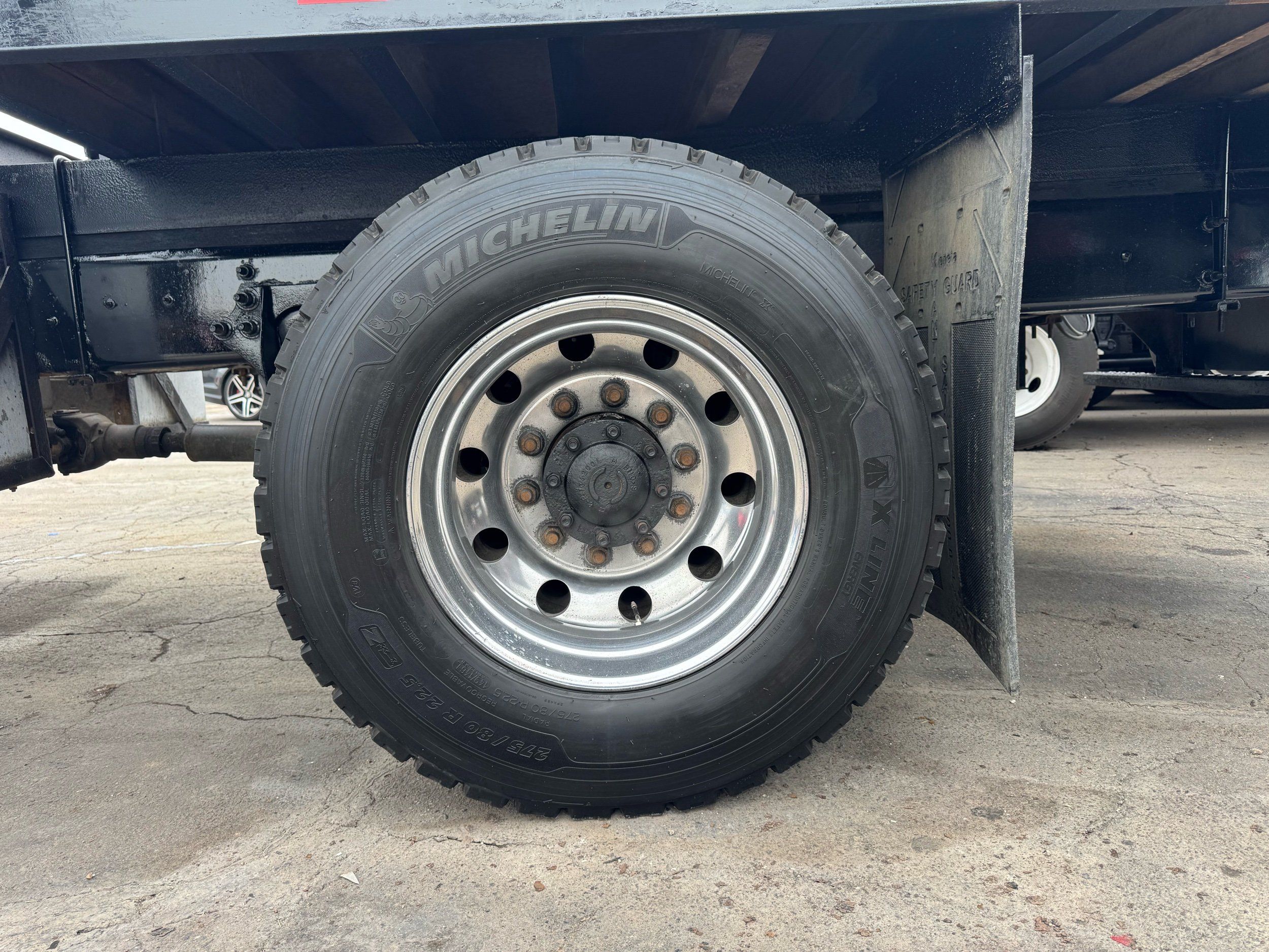 Features: Regular Cab, Dual Rear Wheel, Mud Flaps, Cab Lights, Storage Boxes, 18 FT Stakebed, 7 Ft Bed Width, Tie Down Straps, New Tires, Spring Suspension, Air Brakes, 275HP, Power Locks, Power Windows, Power Mirrors, Air Seat, Vinyl Seats, Vinyl Floor, Floor Mats, GVWR 26000lb, Cruise Control, 4994 Hours, Heat, Air Conditioning, AM/FM, Auxiliary, CD Player, 11 Ft 2 In Max Height, Allison 3000 Automatic Transmission, Maxon 3500lb Liftgate