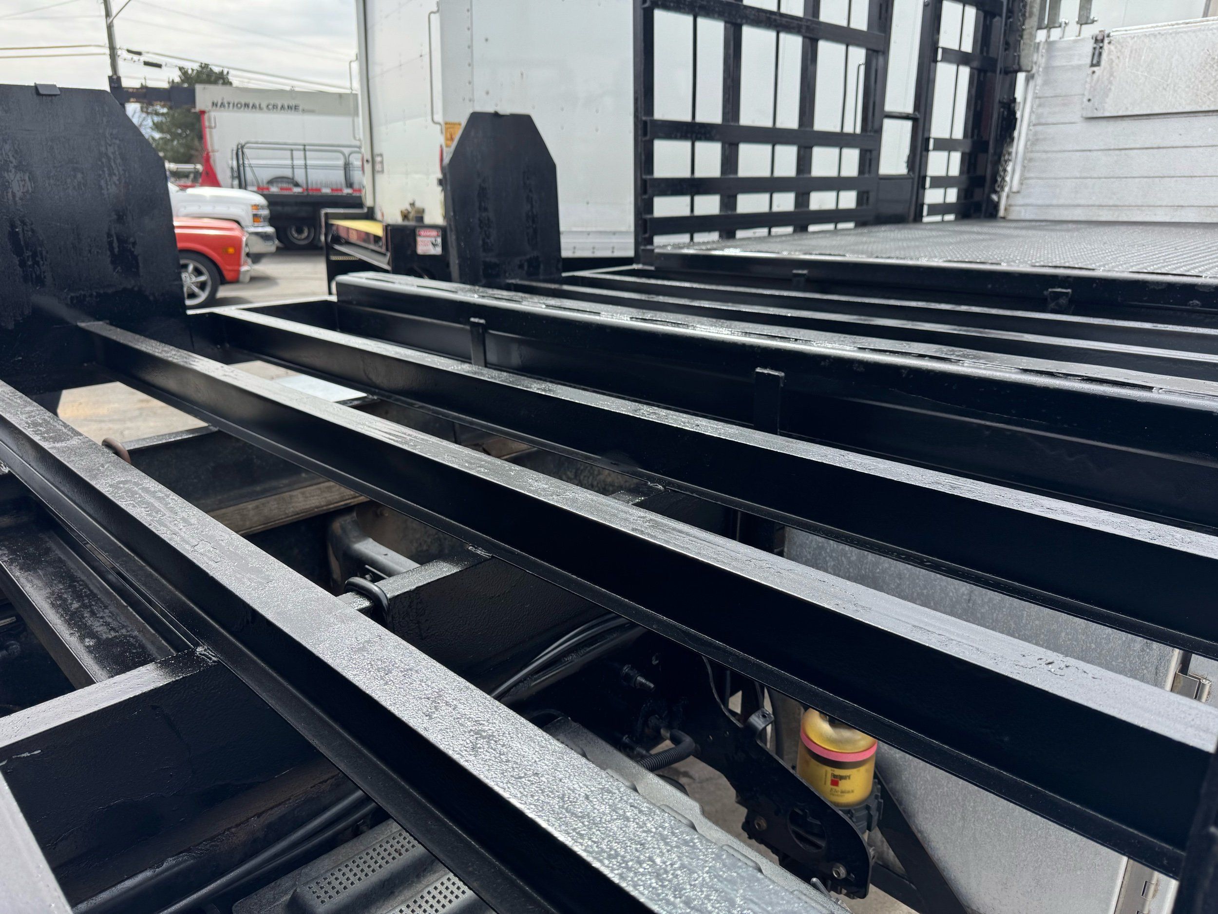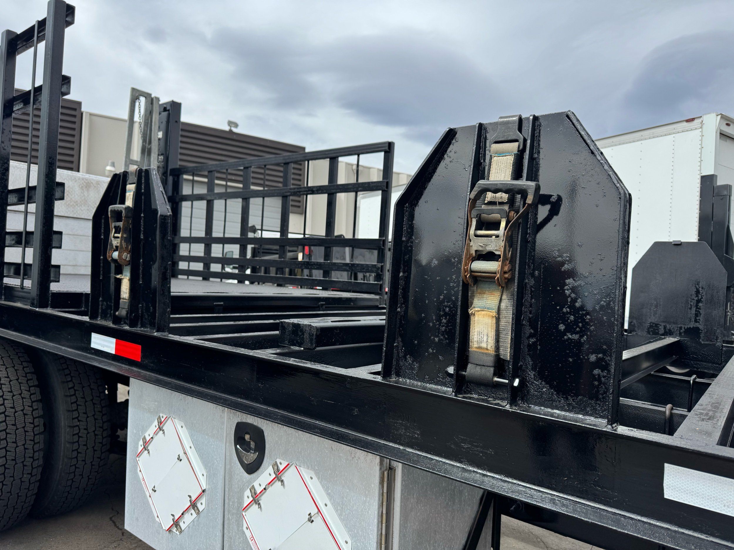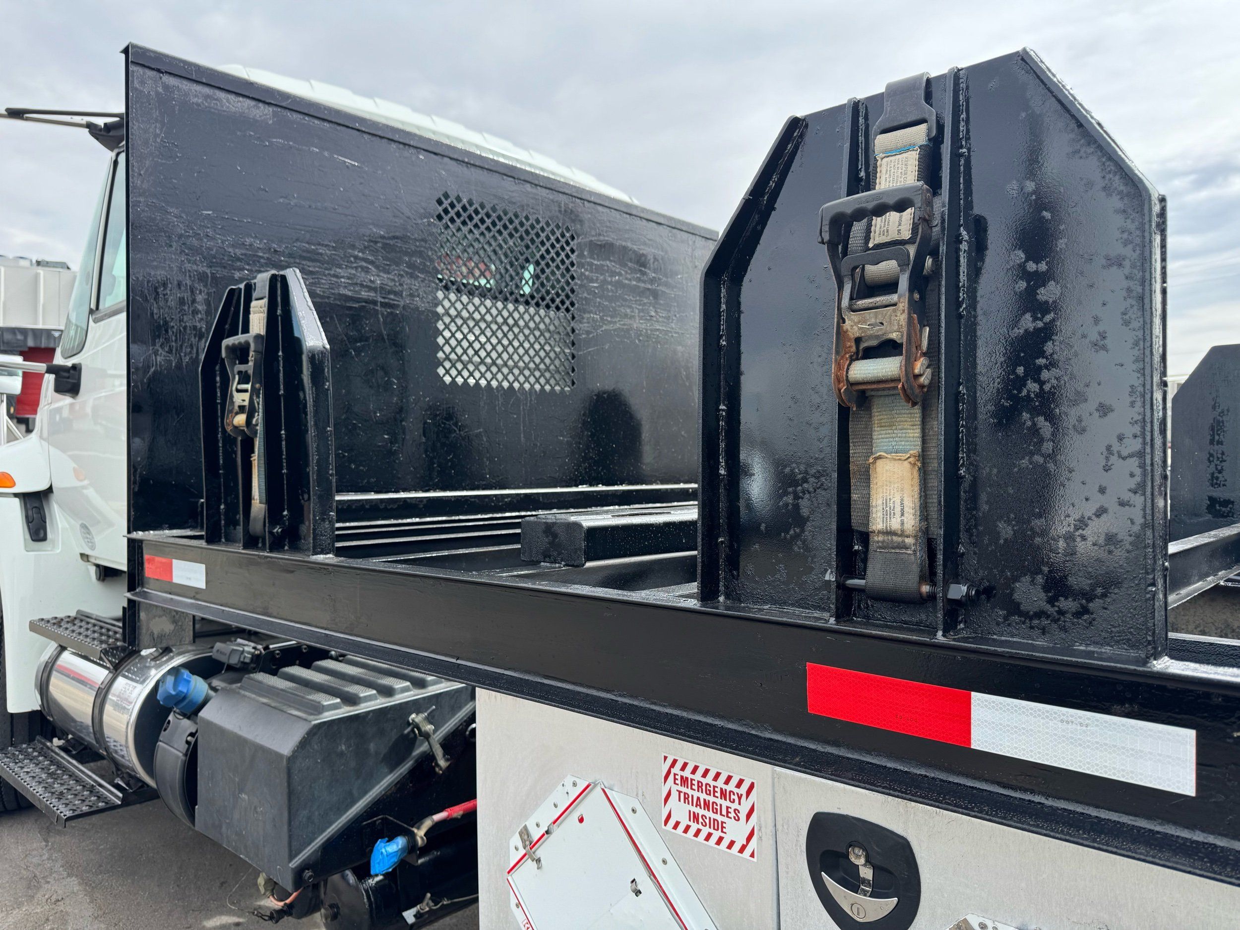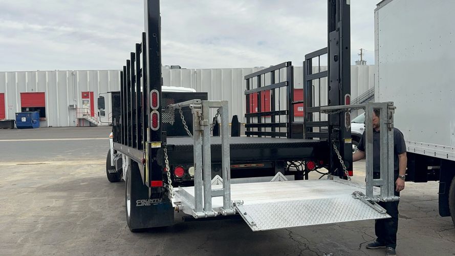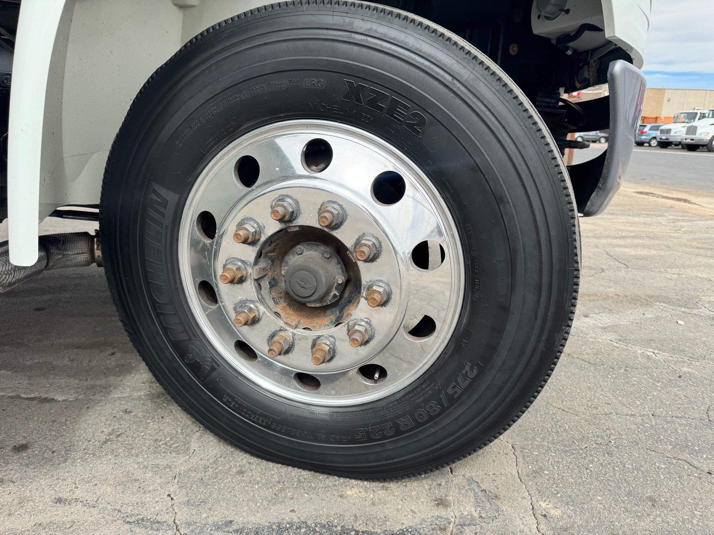 Features: Regular Cab, Dual Rear Wheel, Mud Flaps, Cab Lights, Storage Boxes, 18 FT Stakebed, 7 Ft Bed Width, Tie Down Straps, New Tires, Spring Suspension, Air Brakes, 275HP, Power Locks, Power Windows, Power Mirrors, Air Seat, Vinyl Seats, Vinyl Floor, Floor Mats, GVWR 26000lb, Cruise Control, 4994 Hours, Heat, Air Conditioning, AM/FM, Auxiliary, CD Player, 11 Ft 2 In Max Height, Allison 3000 Automatic Transmission, Maxon 3500lb Liftgate