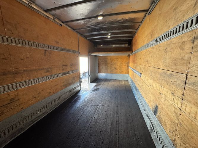 Features: Regular Cab, Liftgate, Side Box Door, Cab Lights, Dual Rear Wheels, Backup Camera, Mud Flaps, Spring Suspension, Power Locks, Power Windows, Power Steering, Cloth Seats, Manual Seats, Cruise Control, GVWR 14500lb, Front GAWR 6630lb, Rear GAWR 11020lb, Alpine CD Player, USB, Auxiliary, Bluetooth, Heat, Air Conditioning, Automatic Transmission, 20ft Morgan Box, Interior Box Lights, 3300lb Max Liftgate Capacity