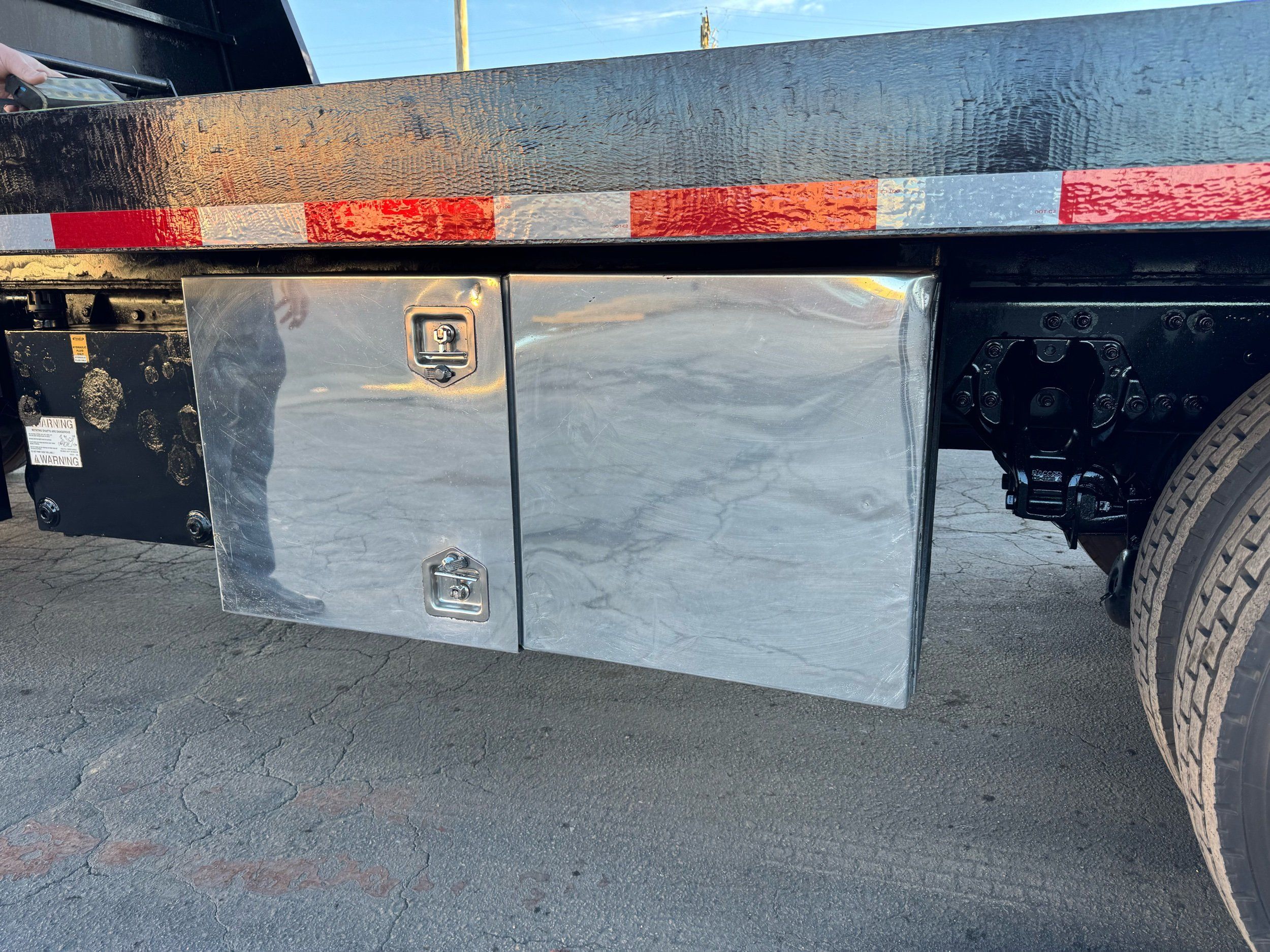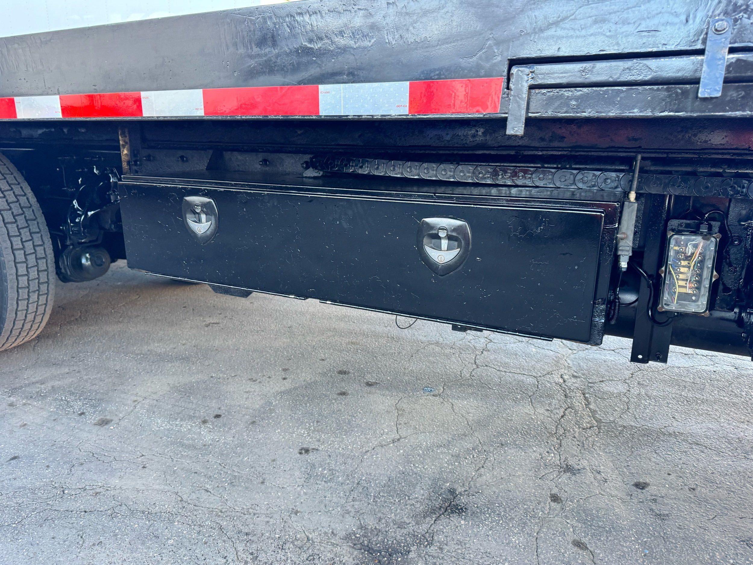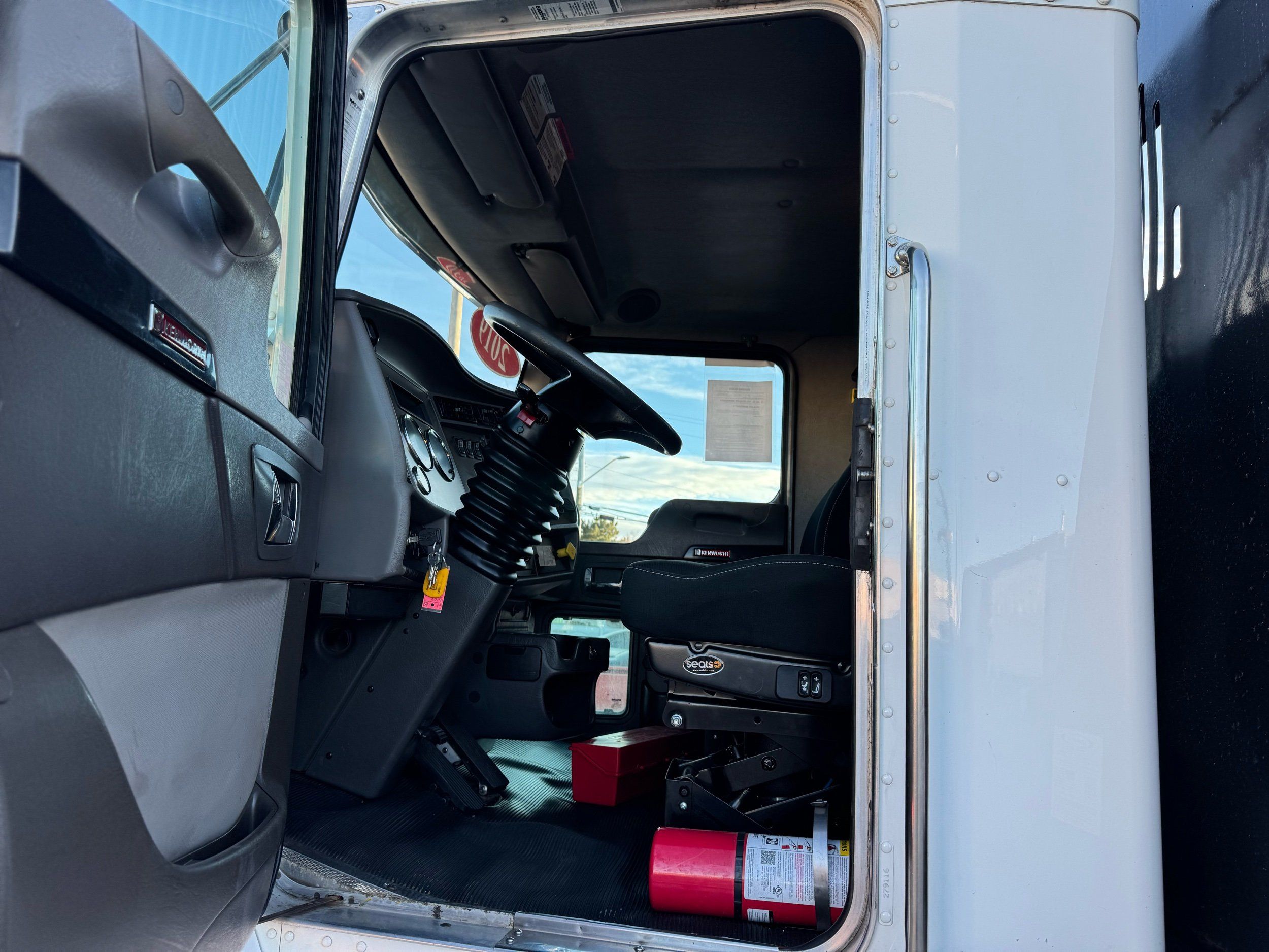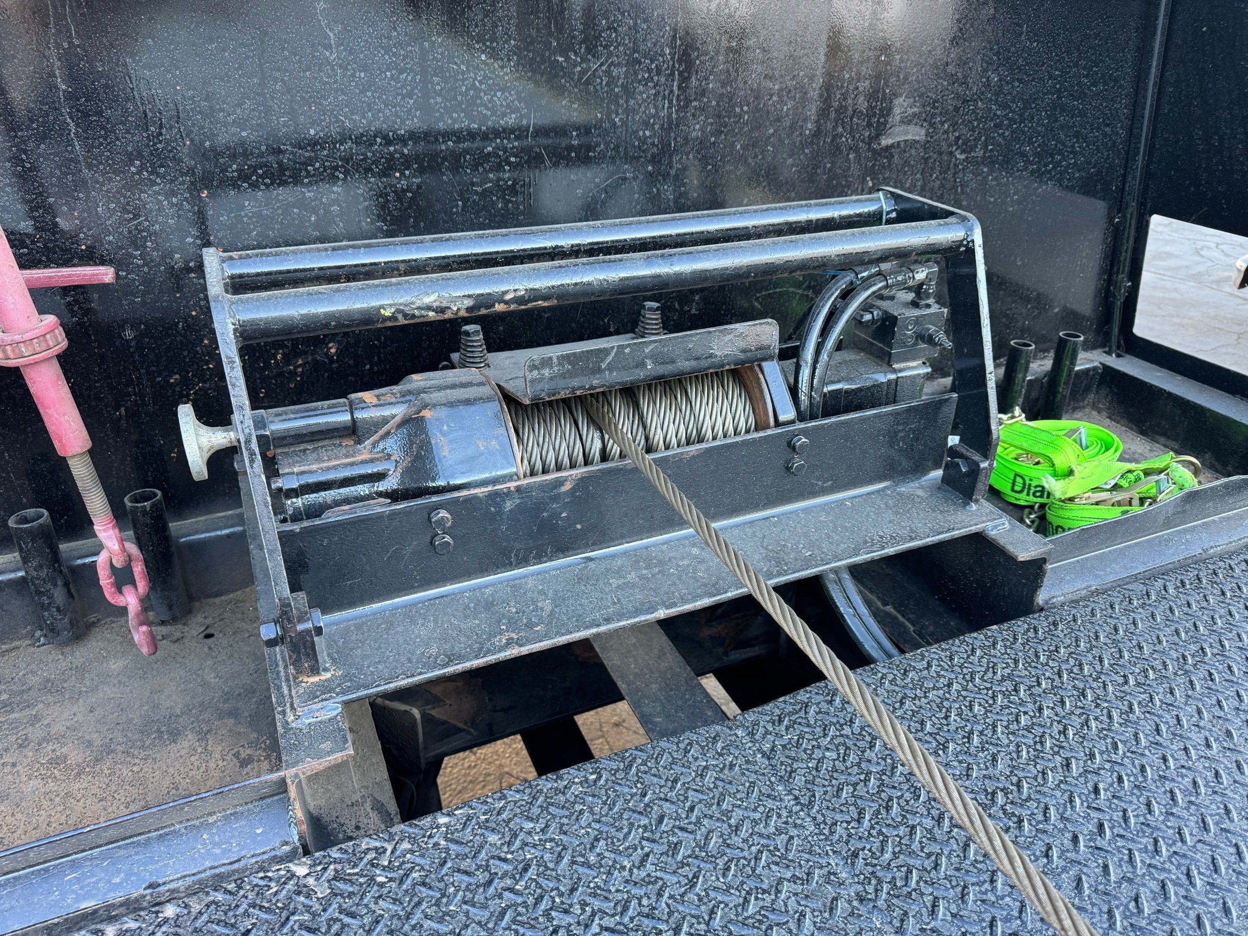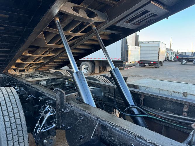 Features: 28ft Rollback, Class 8, Regular Cab, Cab Lights, Work Lights, Strobe Lights, New Tires, Tandem Axle, Mud Flaps, Trailer Package, Tow Straps, New Winch Cable, Storage Boxes, Paccar Engine, Allison Transmission, 350 Horsepower, Power Locks, Power Windows, Air Seat, Cloth Seats, Heated Mirrors, Ledwell Rollback Equipment Mover, GVWR 60000lb, Front GAWR 20000lb, Intermediate GAWR 20000lb, Rear GAWR 20000lb, Air Brakes, 7449 Hours, Heat, Air Conditioning, Automatic Transmission, AM/FM, Bluetooth, USB, Auxiliary, Cruise Control, PTO, Remote Operated Bed, Vinyl Floor, Spring and Air Bag Suspension, Dual Piston Bed, Fresh Service