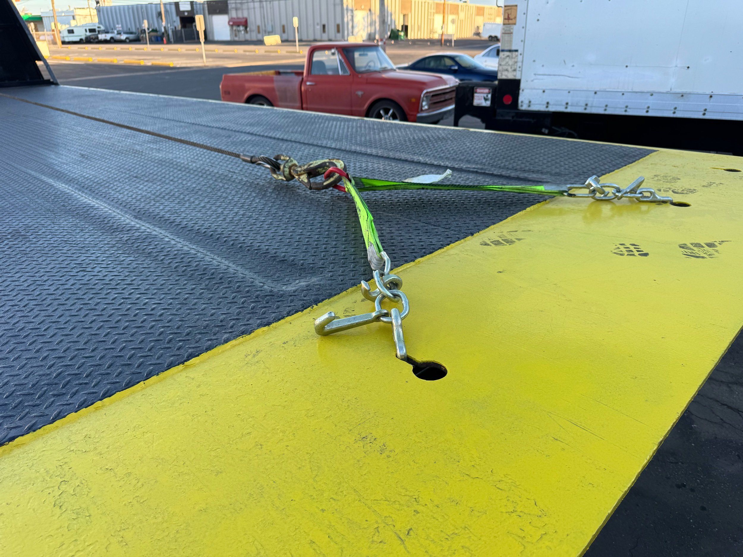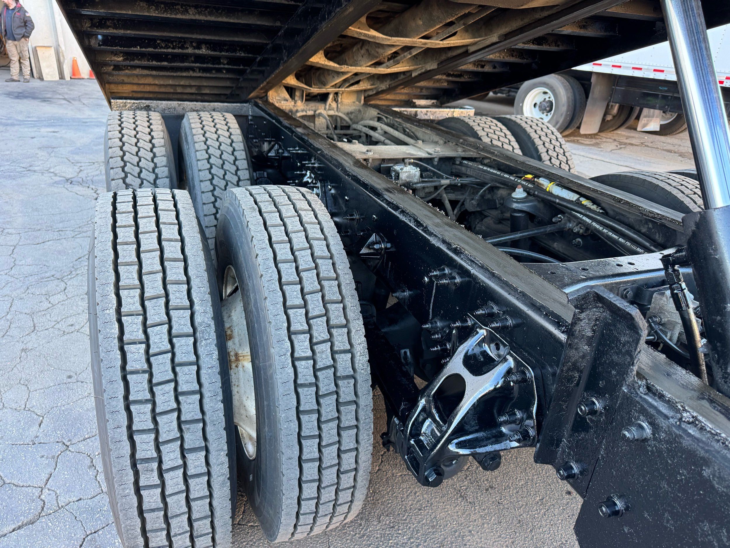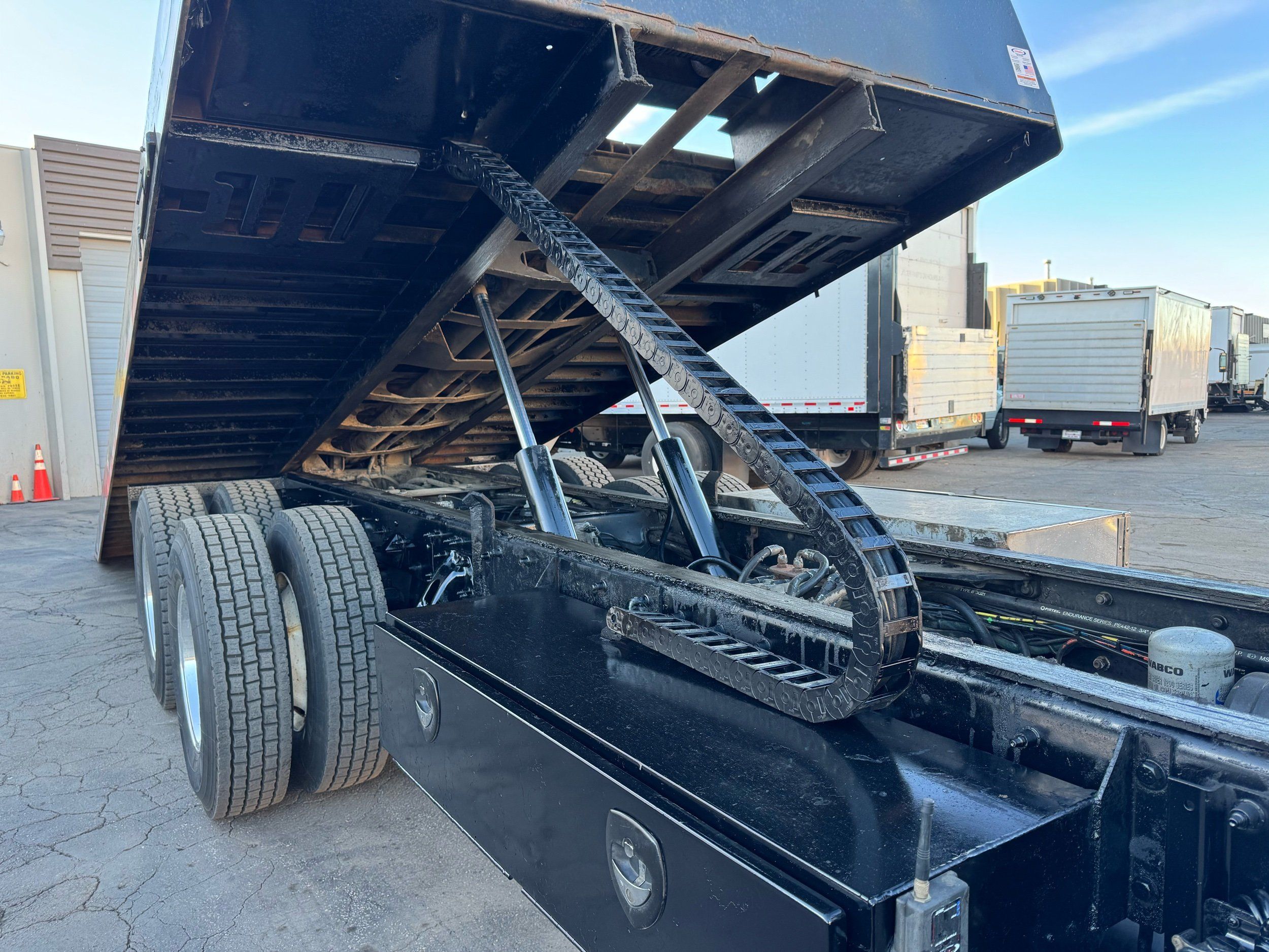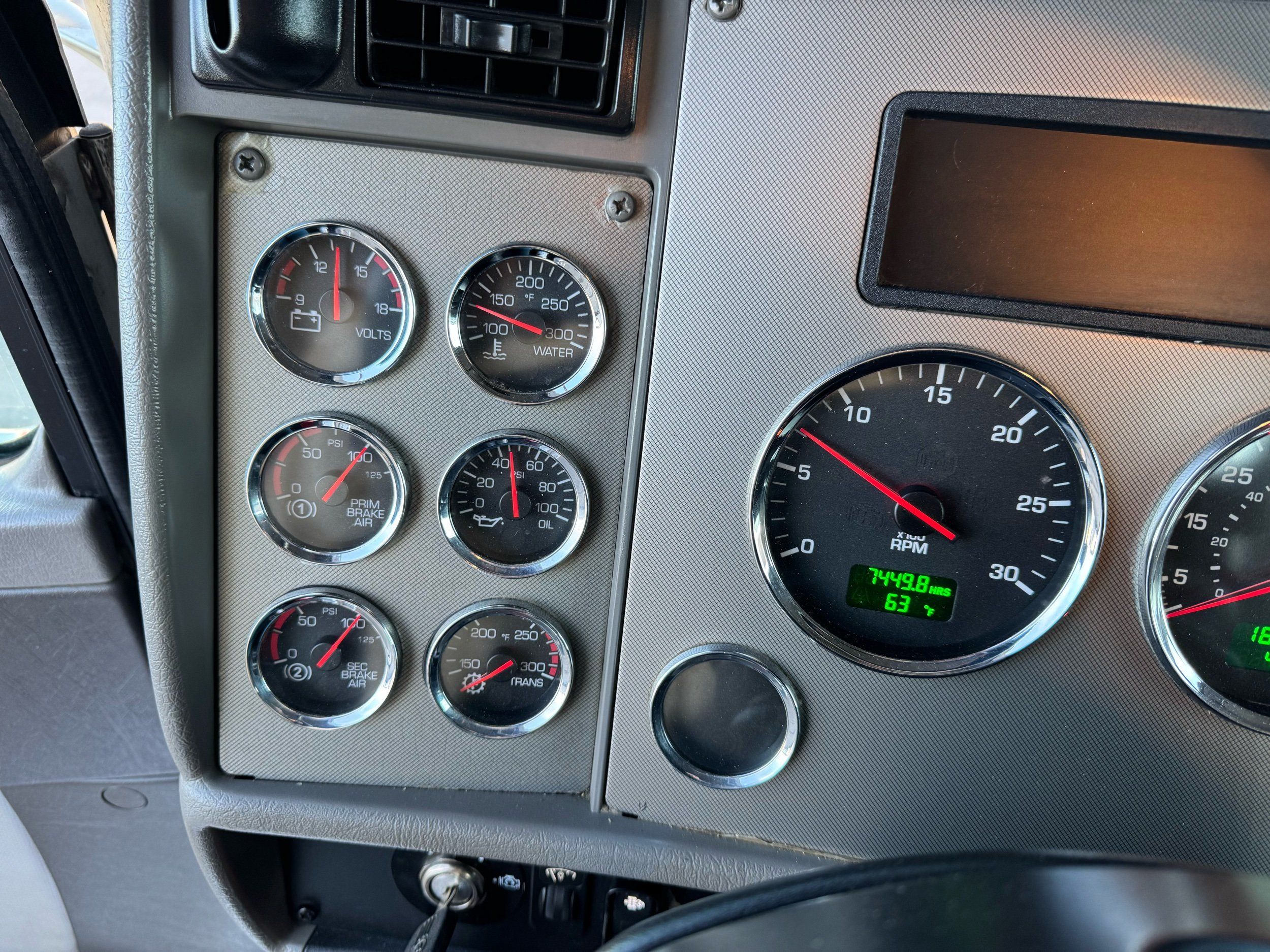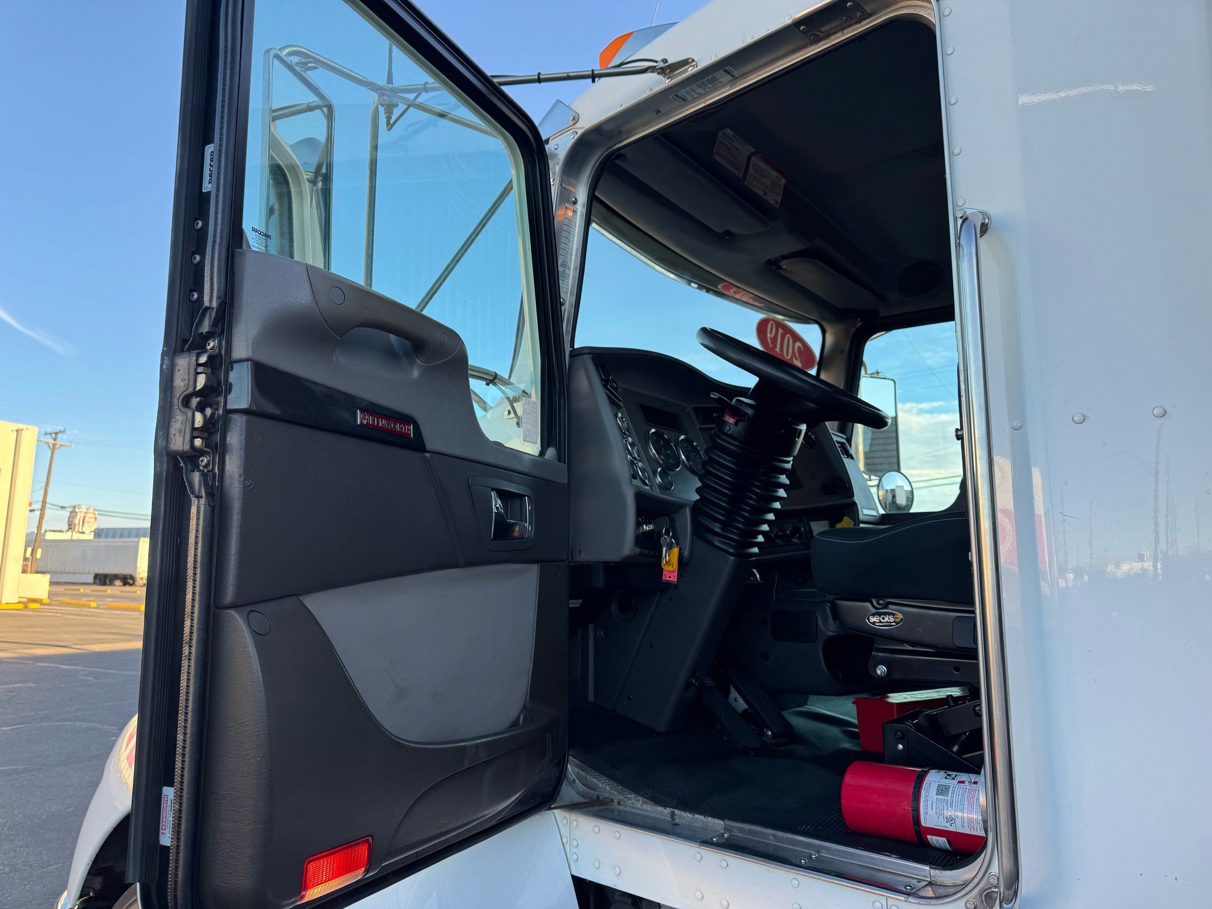 Features: 28ft Rollback, Class 8, Regular Cab, Cab Lights, Work Lights, Strobe Lights, New Tires, Tandem Axle, Mud Flaps, Trailer Package, Tow Straps, New Winch Cable, Storage Boxes, Paccar Engine, Allison Transmission, 350 Horsepower, Power Locks, Power Windows, Air Seat, Cloth Seats, Heated Mirrors, Ledwell Rollback Equipment Mover, GVWR 60000lb, Front GAWR 20000lb, Intermediate GAWR 20000lb, Rear GAWR 20000lb, Air Brakes, 7449 Hours, Heat, Air Conditioning, Automatic Transmission, AM/FM, Bluetooth, USB, Auxiliary, Cruise Control, PTO, Remote Operated Bed, Vinyl Floor, Spring and Air Bag Suspension, Dual Piston Bed, Fresh Service